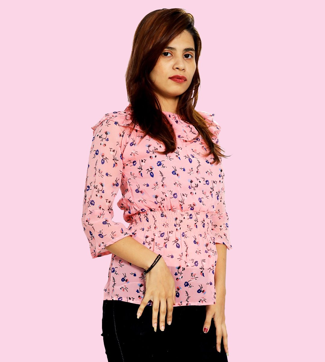Butterfly pea flowers floral printed womens top (pink top) - Made up of Rayon for your plesant and cozy