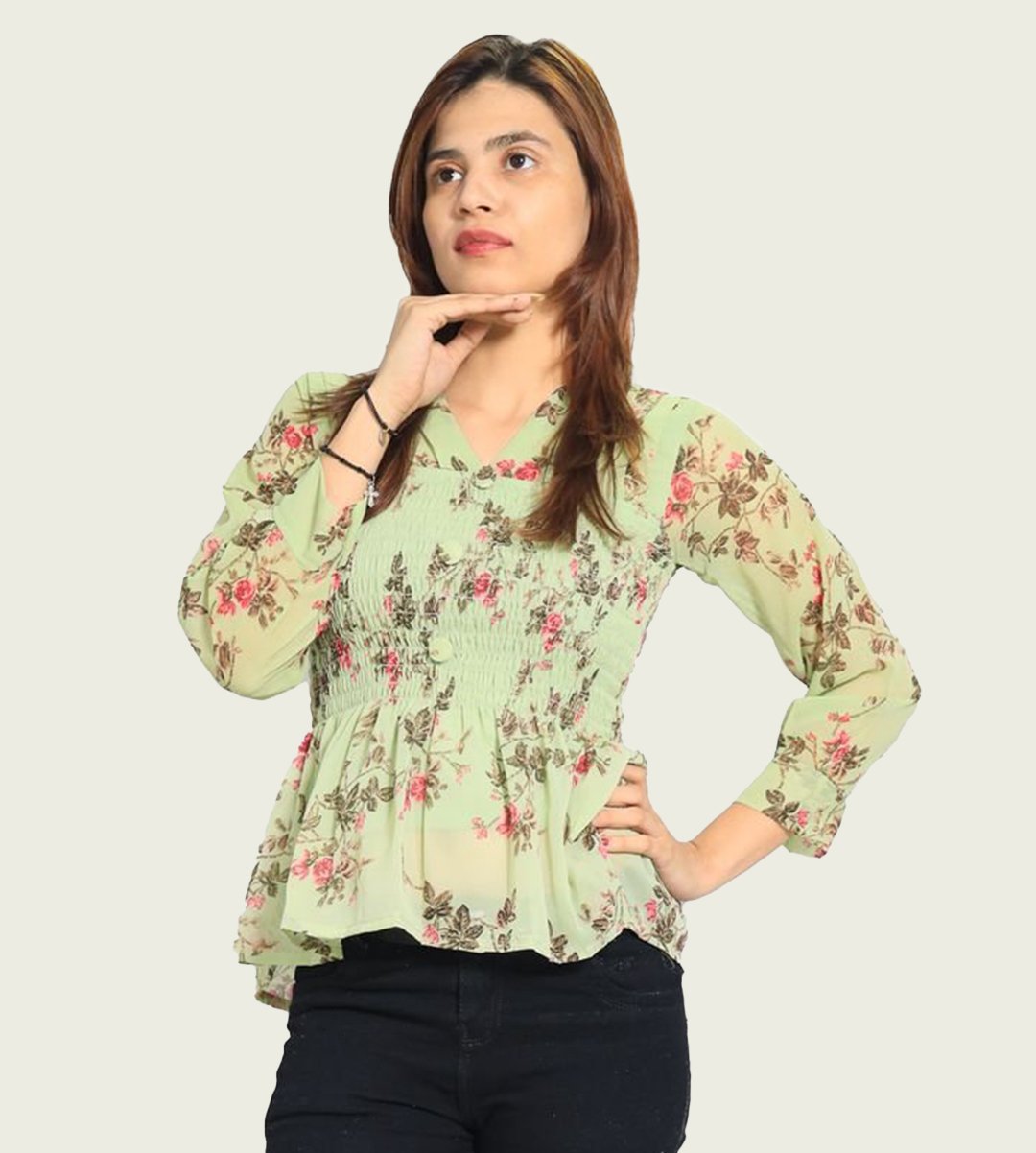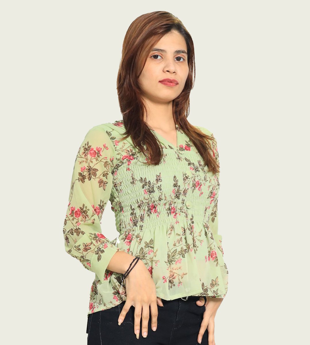 Women loves to wear top of any age groups. The fashion is not only limited upto young girls / teenagers but some married women also love to wear it. The recognization of top is very much popular in 21st century. It is used by the modernized ladies. Easy to wear. It looks good with jeans or jeggings. We have brought you a full collection of floral designs printed top to choose from. This is made up of Rayon and designed for your plesant and cozy.