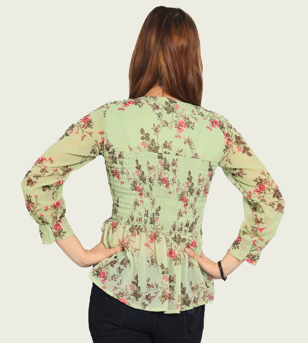 Red flowers floral womens printed top (light green top) - Made up of Rayon for your plesant and cozy