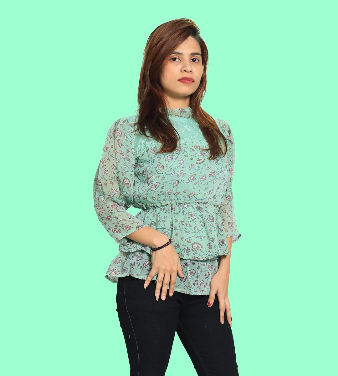 Women loves to wear top of any age groups. The fashion is not only limited upto young girls / teenagers but some married women also love to wear it. The recognization of top is very much popular in 21st century. It is used by the modernized ladies. Easy to wear. It looks good with jeans or jeggings. We have brought you a full collection of floral designs printed top to choose from. This is made up of Rayon and designed for your plesant and cozy.