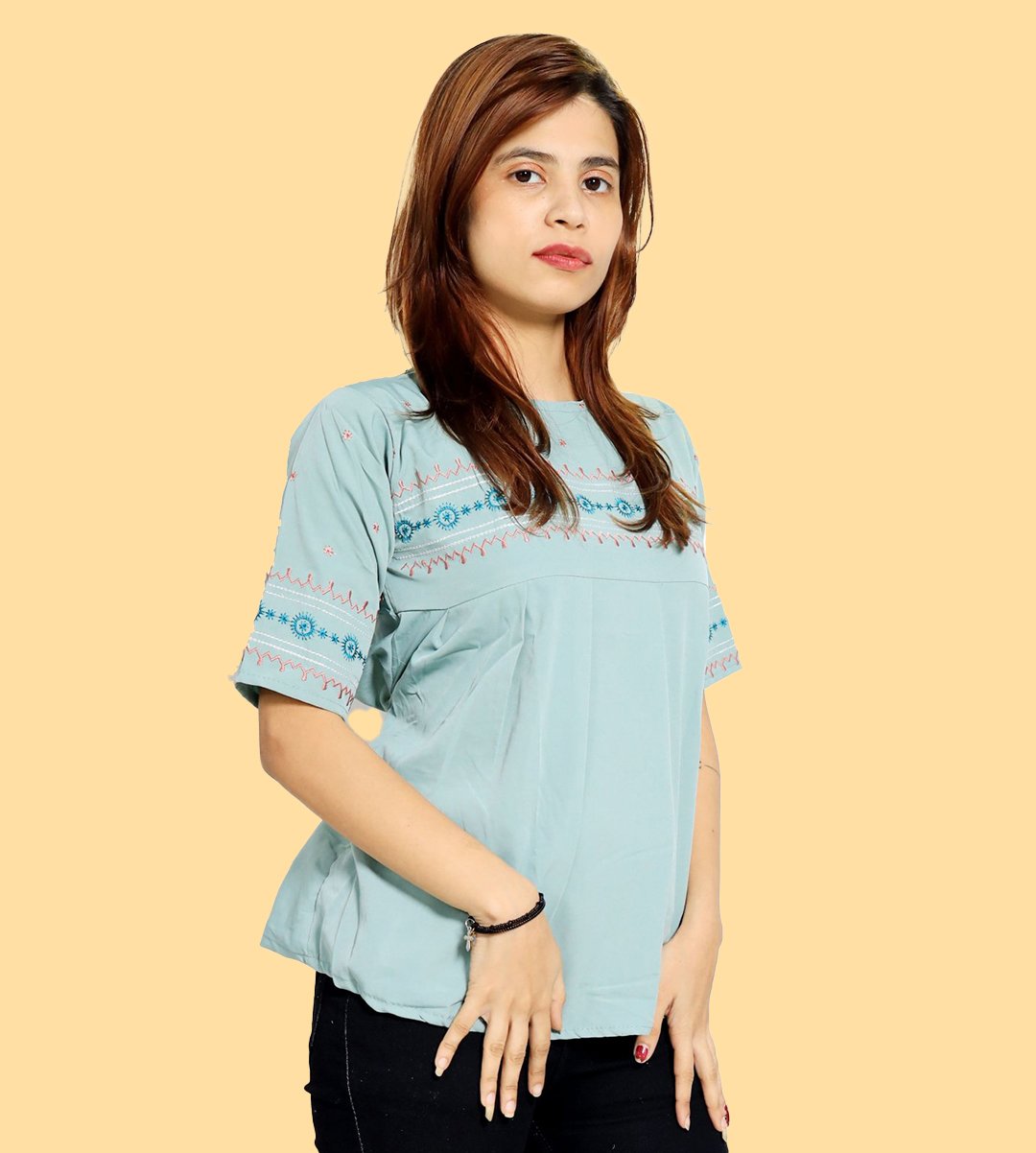 Women loves to wear top of any age groups. The fashion is not only limited upto young girls / teenagers but some married women also love to wear it. The recognization of top is very much popular in 21st century. It is used by the modernized ladies. Easy to wear. It looks good with jeans or jeggings. We have brought you a full collection of floral designs printed top to choose from. This is made up of Rayon and designed for your plesant and cozy.