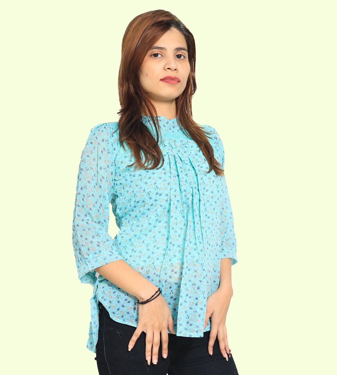 Women loves to wear top of any age groups. The fashion is not only limited upto young girls / teenagers but some married women also love to wear it. The recognization of top is very much popular in 21st century. It is used by the modernized ladies. Easy to wear. It looks good with jeans or jeggings. We have brought you a full collection of floral designs printed top to choose from. This is made up of Rayon and designed for your plesant and cozy.