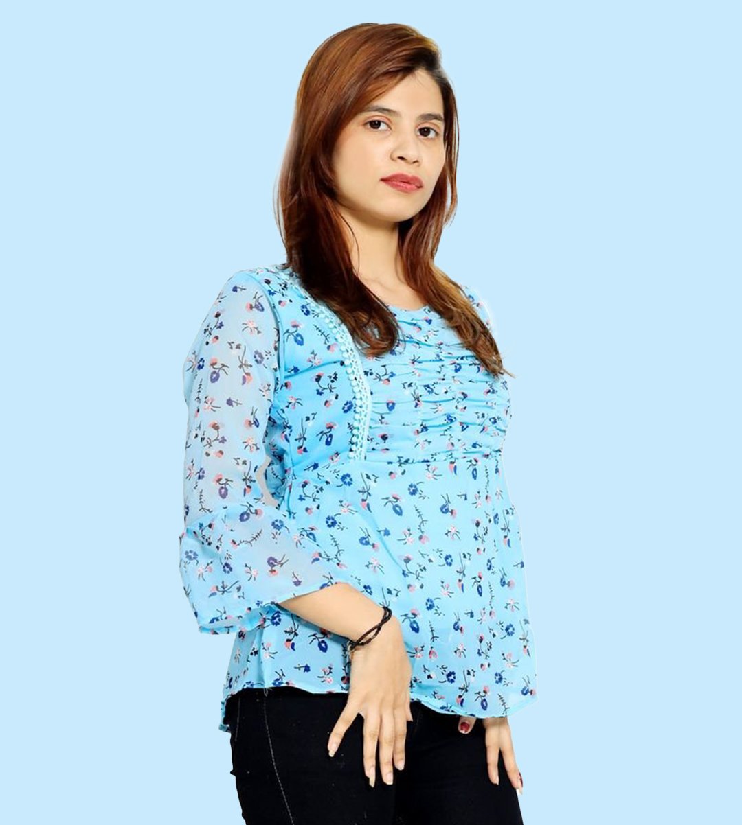 Tiny blue flowers floral womens printed top (sky blue top) - Made up of Rayon for your plesant and cozy