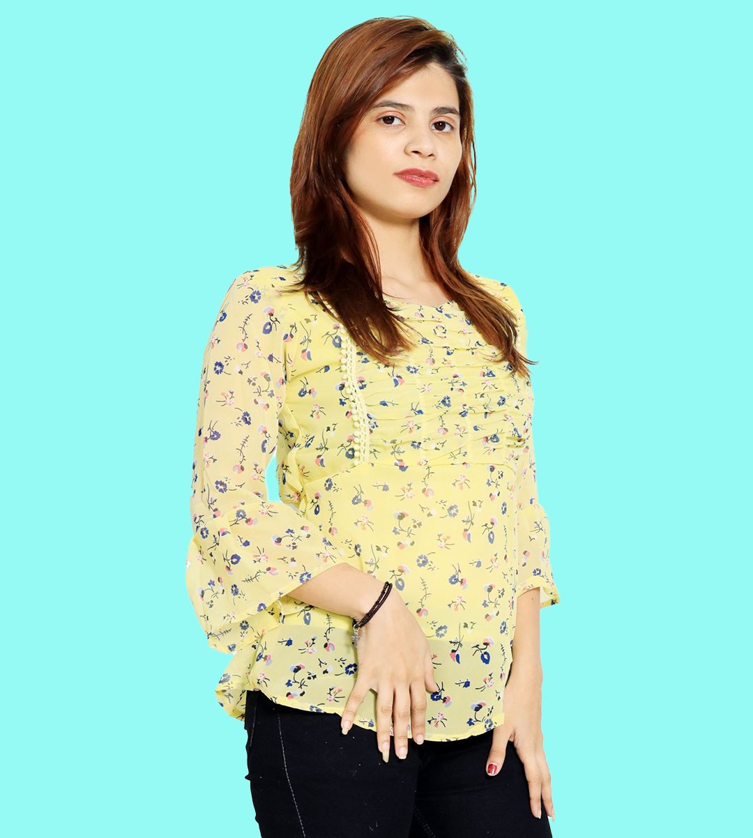 Blue pupils floral womens printed top (yellow top) - Made up of Rayon for your plesant and cozy