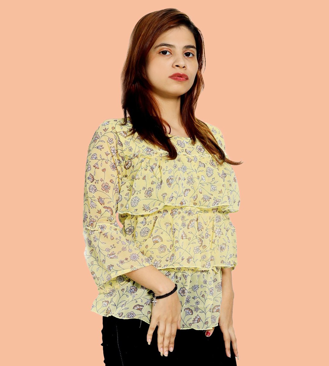 Wheatish Flower floral womens printed top (yellow top) - Made up of Rayon for your plesant and cozy
