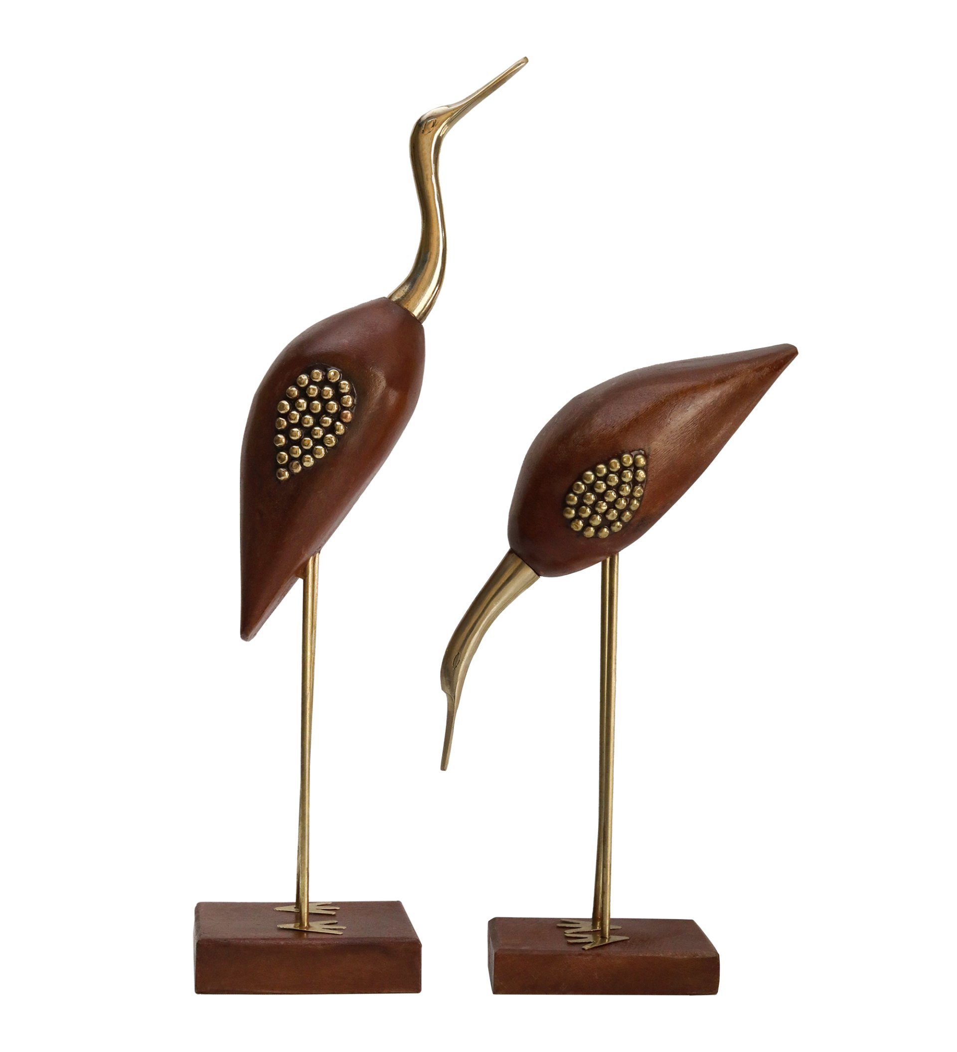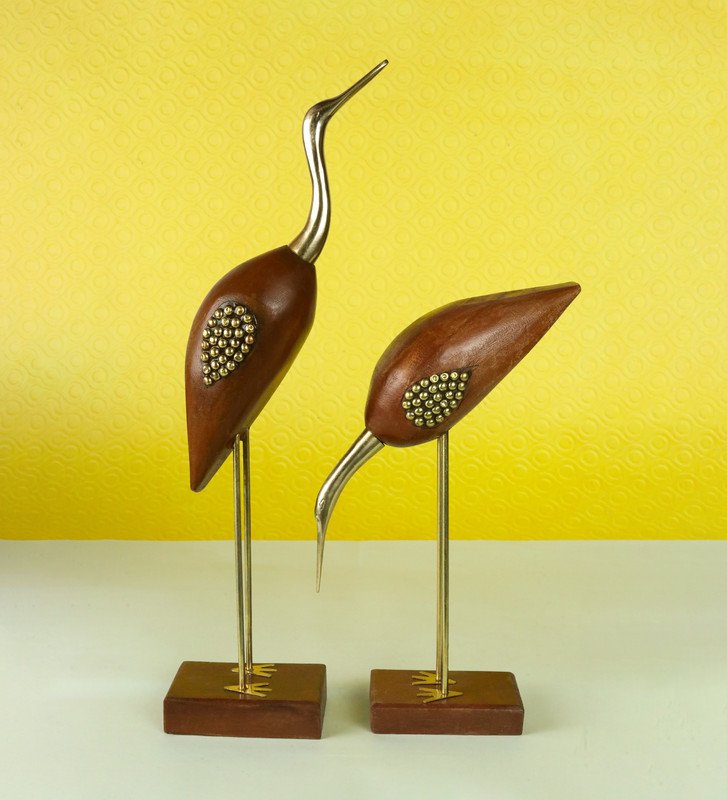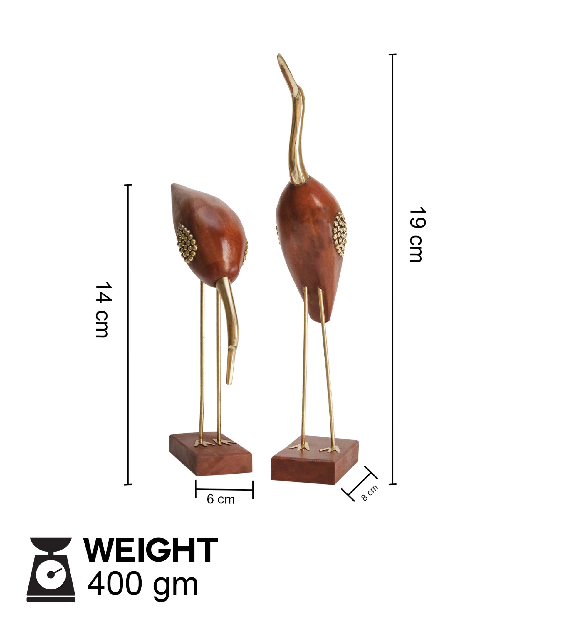 Wooden and Brass, Antique Decorative Crane Love Birds Showpiece Home Decor - Set of 2