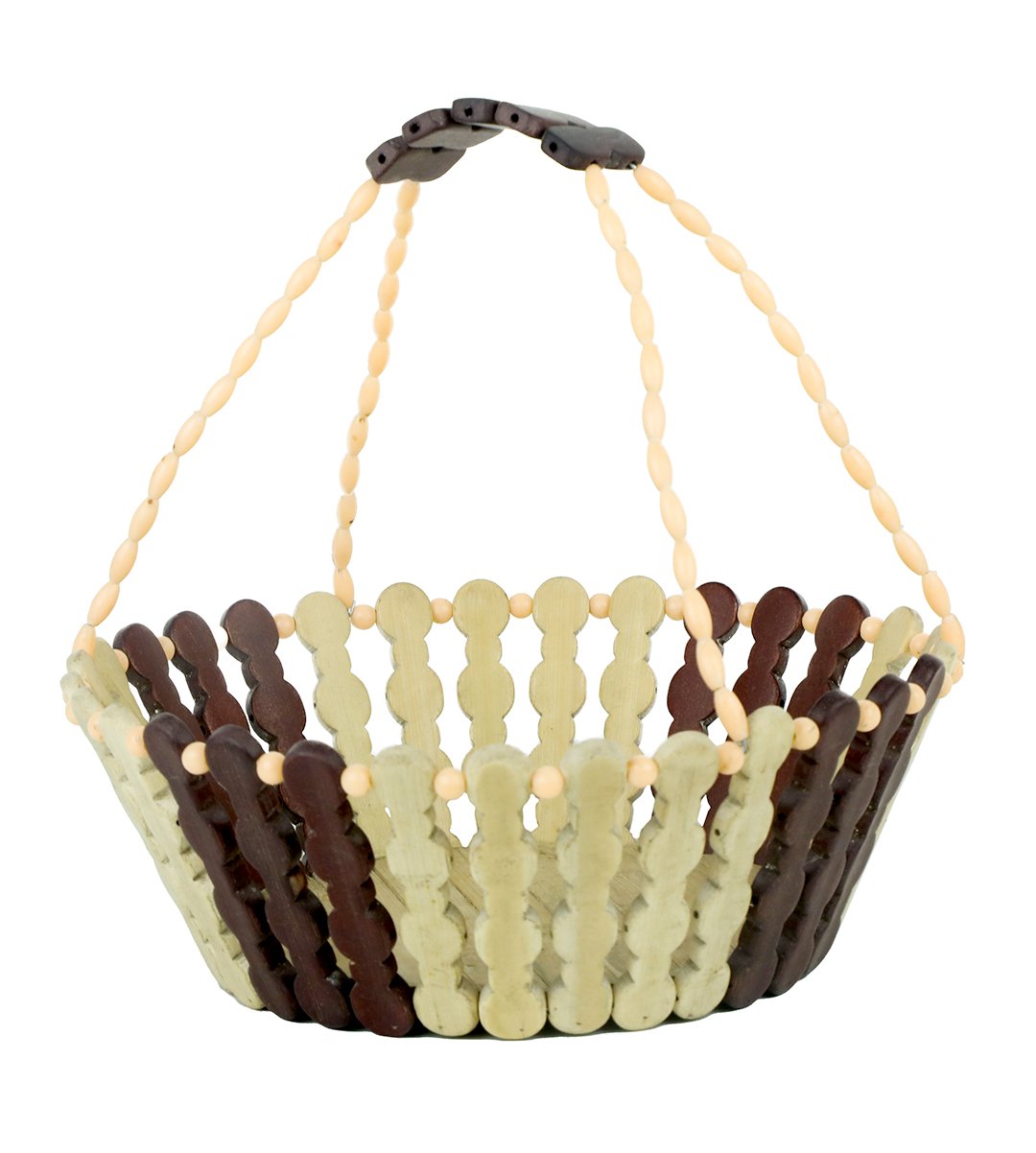 Wooden brown-white vertical bars with hanger fruit and vegetable basket, vessel or a fruit container is used to keep both fruits and vegetables in it. Intricated with every detailing of the product, it is a carryable product. The designs enhancing the product into a classified one. It has best finishing. It is used to keep in dining tables and center tables. You must have your favourite one. We have brought you many fruit and vegetable containers to choose from. You can gift it to your family, relatives, friends, siblings. Also it can be gifted in birthdays, marriages, anniversaries, house warming parties, christmas parties, kitty parties etc. Grab it as soon as possible.