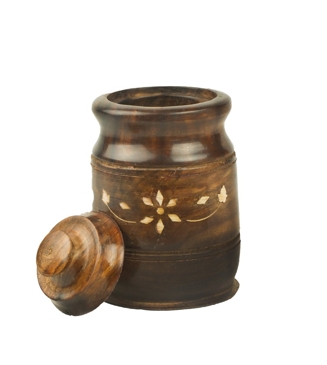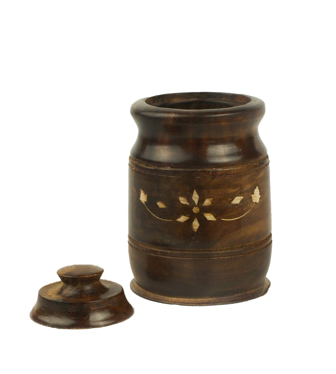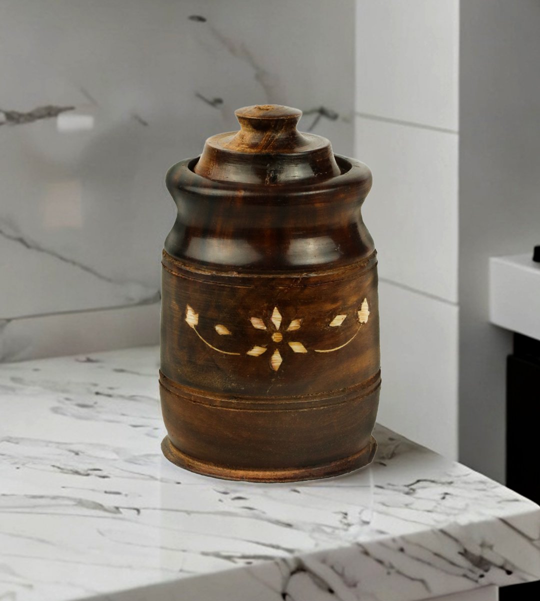 Wooden salt jar / sugar container / salt keeper looks attractive because of its carving inlay design. These type of containers are used by people to keep pickle, sugar, tea leaves, aniseed, betal nuts etc. Everyone has their favourite one to choose from. It looks good in transparent cupboards or also you can keep it in dining table as a showpiece. We have brought you many wooden and stylish wooden jars of different designs. Grab it now. Add an element of beauty to your home decor. It could be a memorable gift for birthdays, marriage parties, house warming, anniversary etc, it can be a memorable return gift. What can be a better gift than an unique wooden pickle jars for your loved ones?