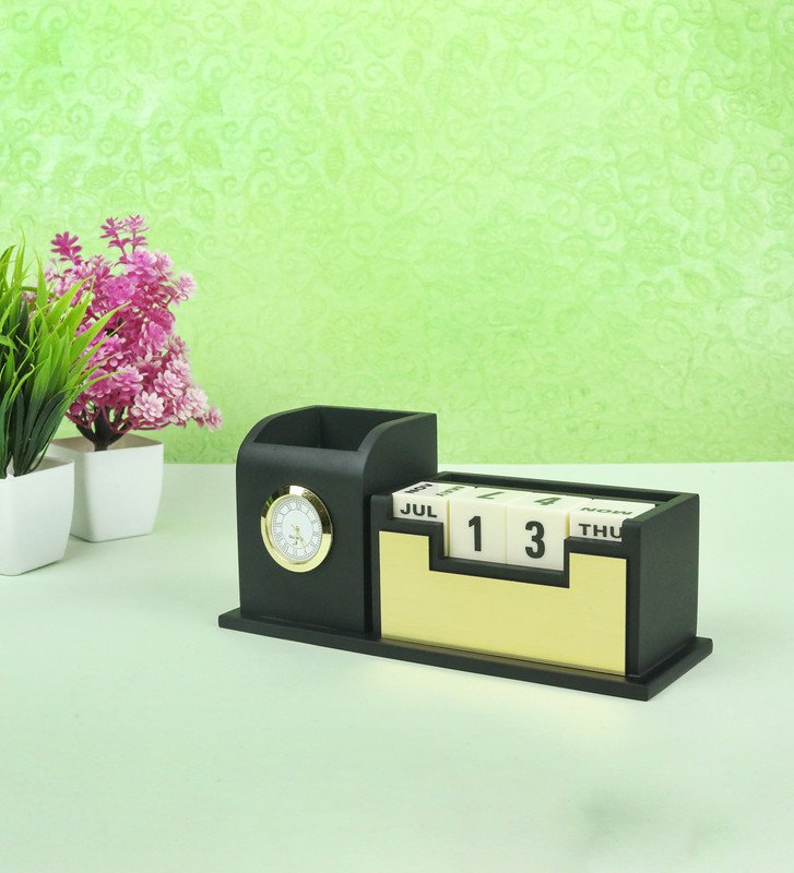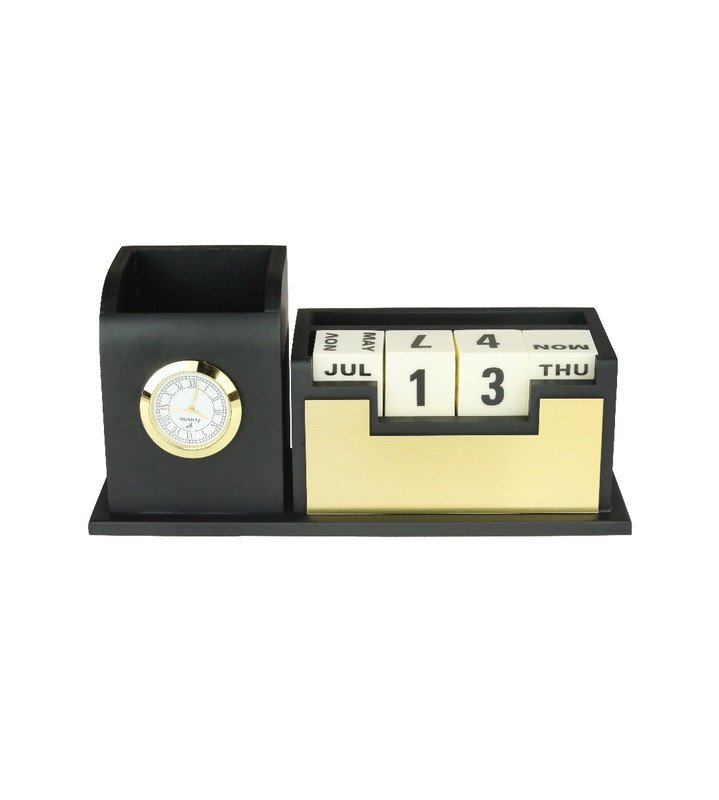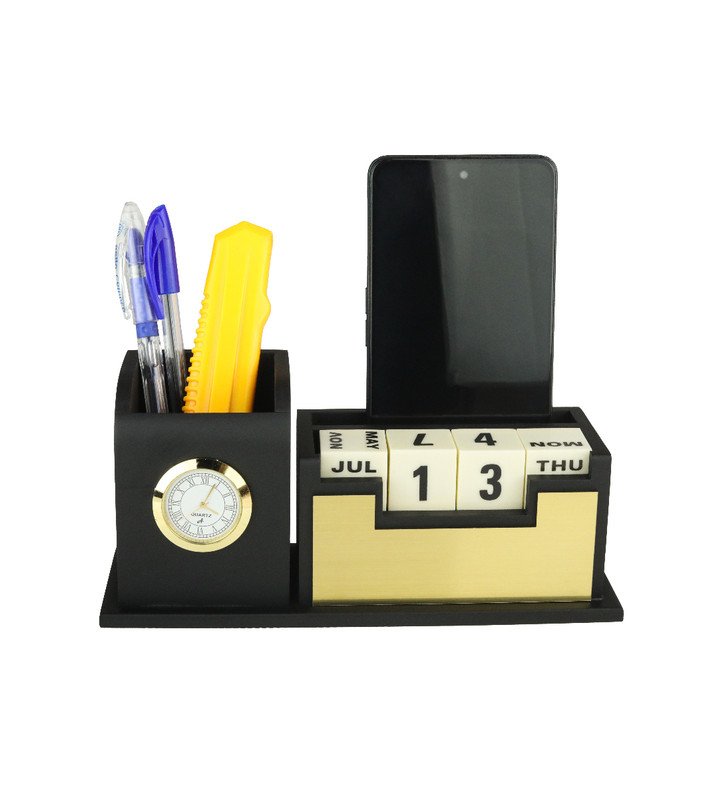 Wooden Desk Organizer Pen Stand & Table Calendar Clock And Phone Holder,Office Table Accessories