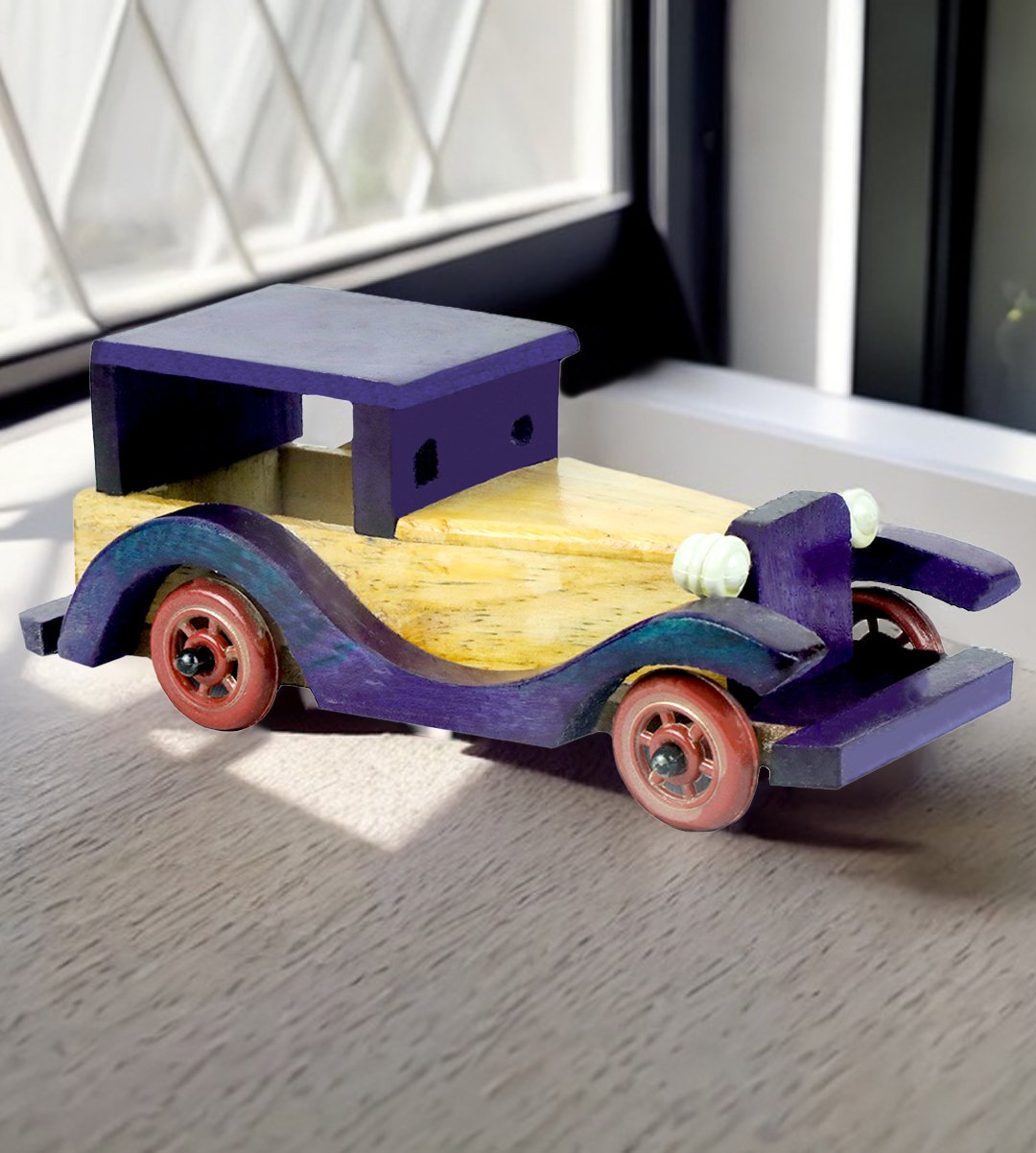 Wooden vintage style classic large jeep toy game for kids (collectible item) (purple)