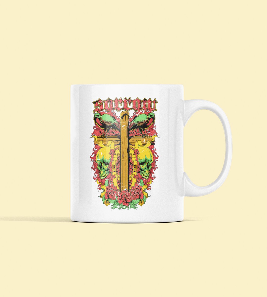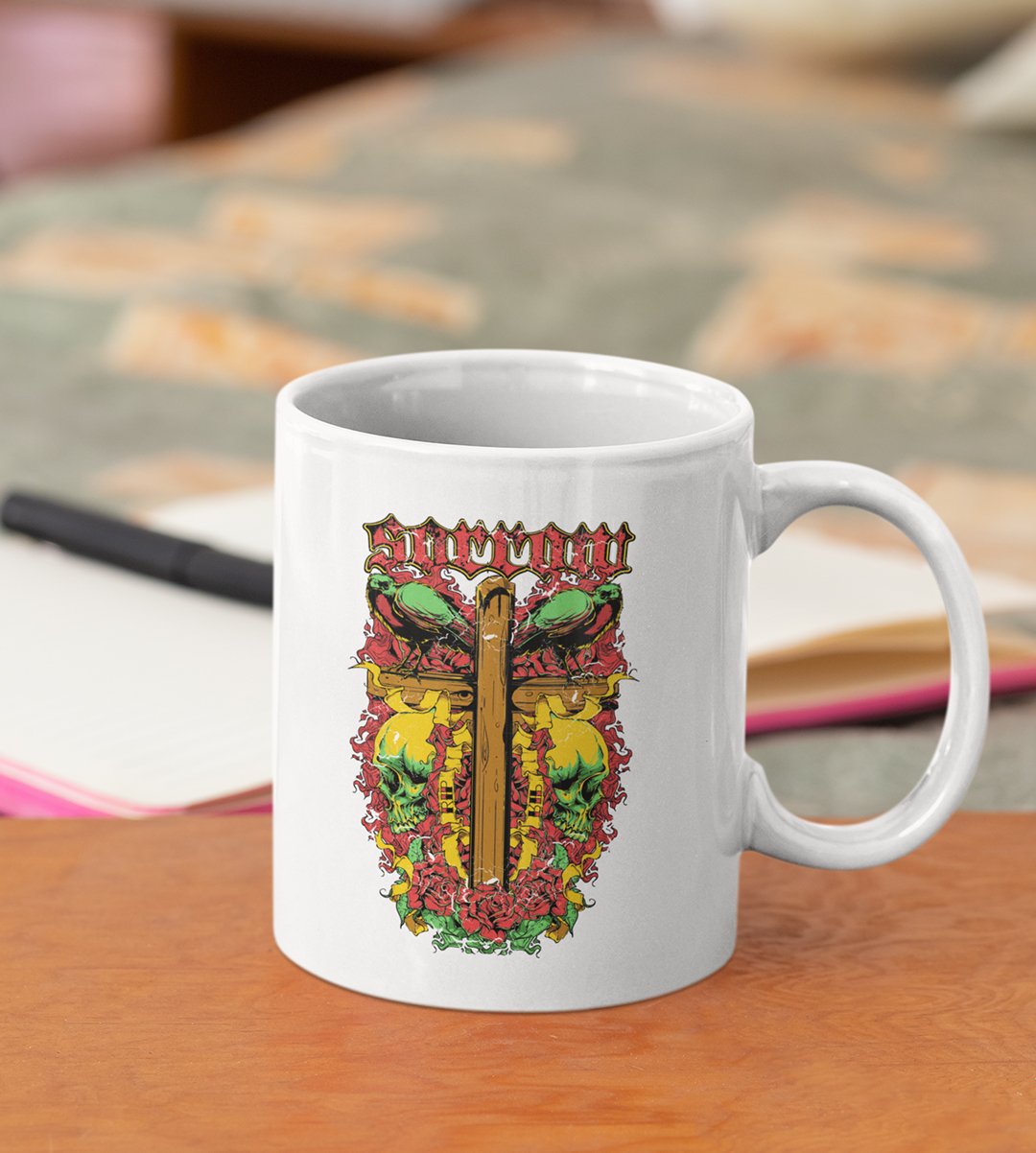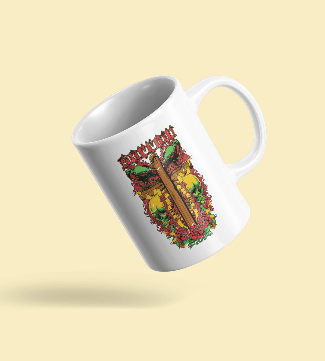 Sorrow (wooden Jesus cross) - animation themed printed ceramic white coffee and tea mugs/ cups for animation lovers