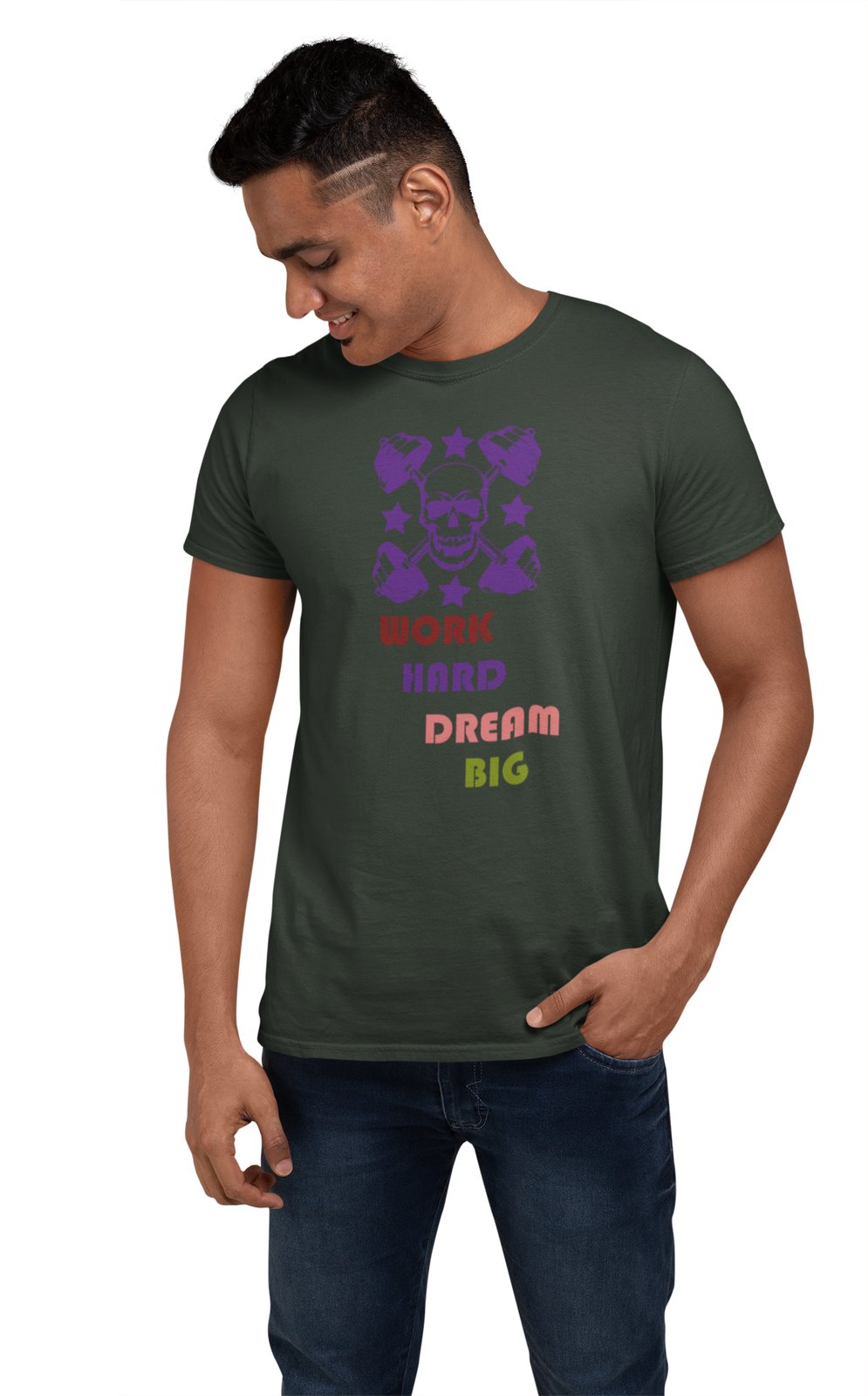 Word Hard, Dream Big, (BG Violet Skull), Round Neck Gym Tshirt - Foremost Gifting Material for Your Friends and Close Ones
