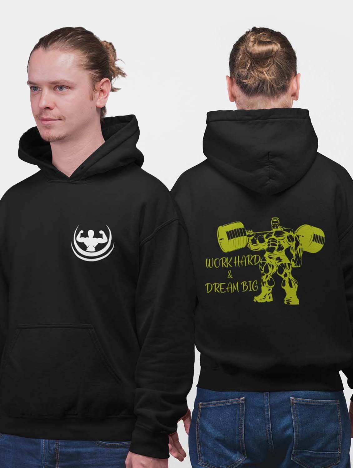 Work hard And Dream Big, (BG Green) printed artswear black hoodies for winter casual wear specially for Men