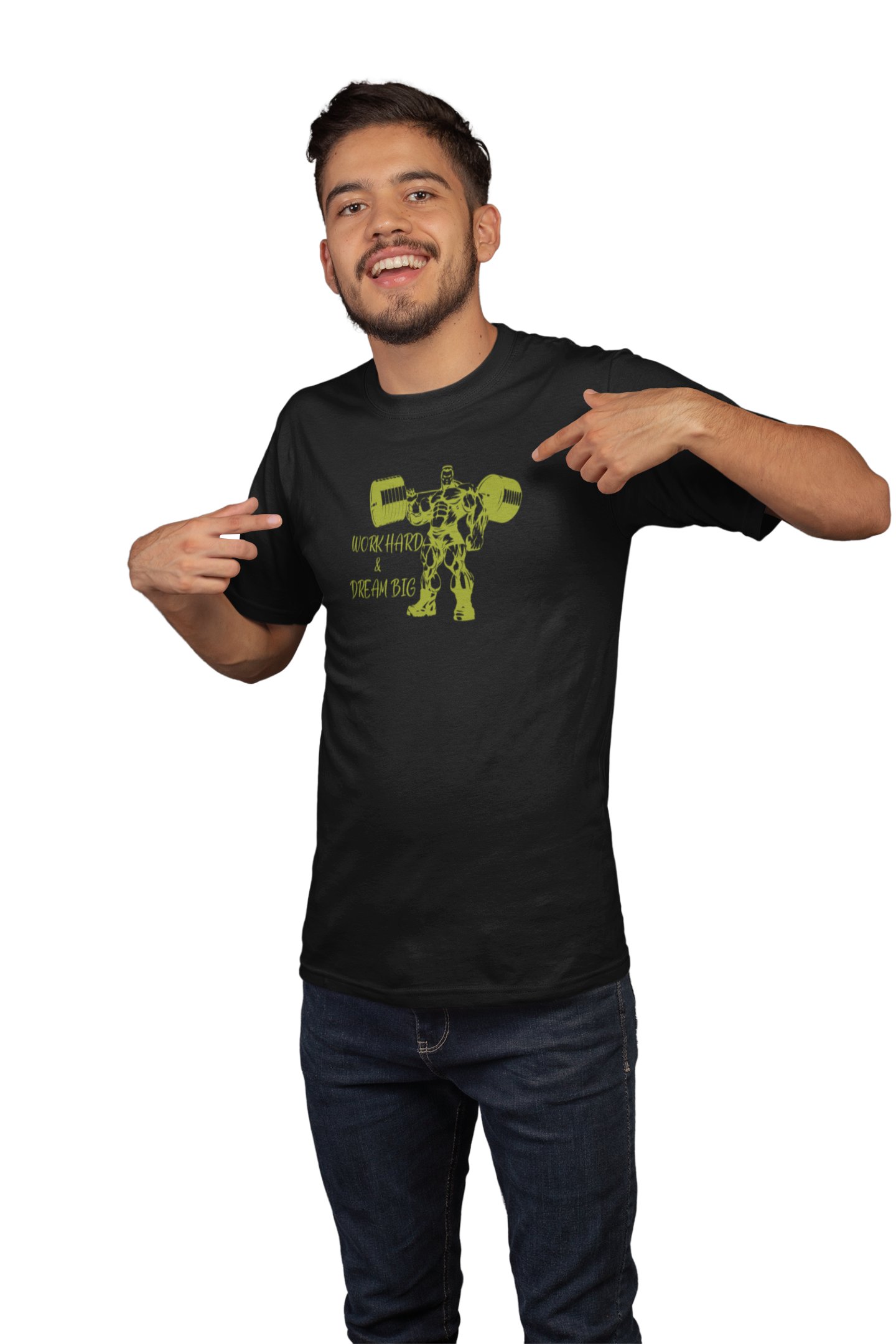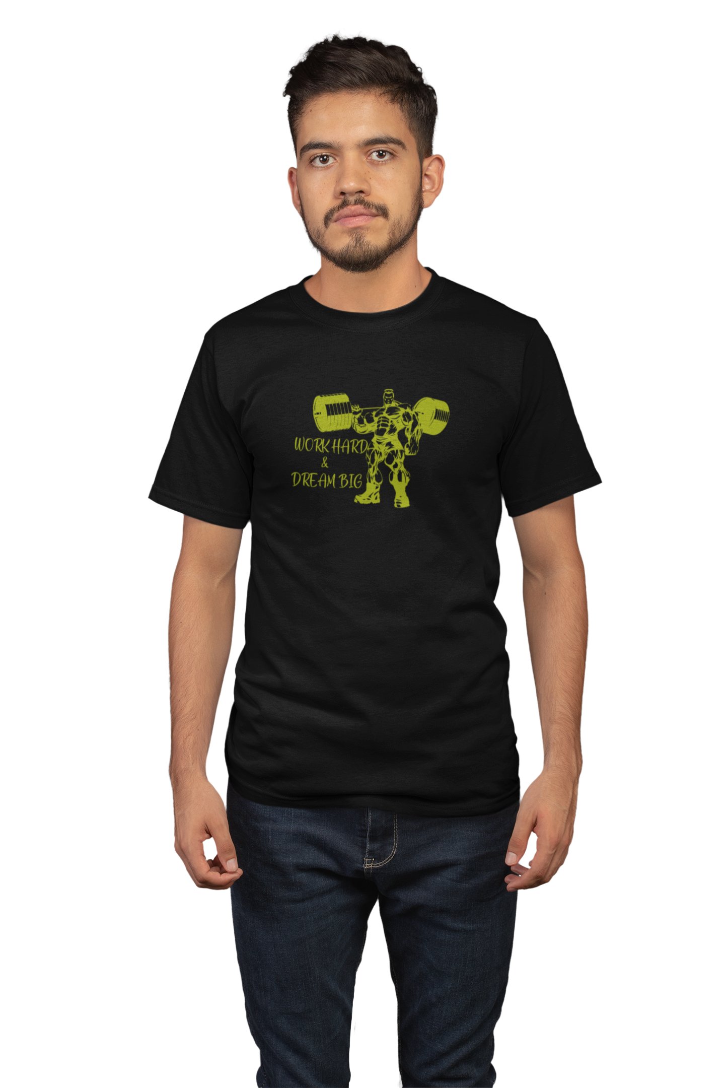 Work hard And Dream Big, (BG Green), Round Neck Gym Tshirt (Black Tshirt) - Clothes for Gym Lovers - Suitable for Gym Going Person - Foremost Gifting Material for Your Friends and Close Ones