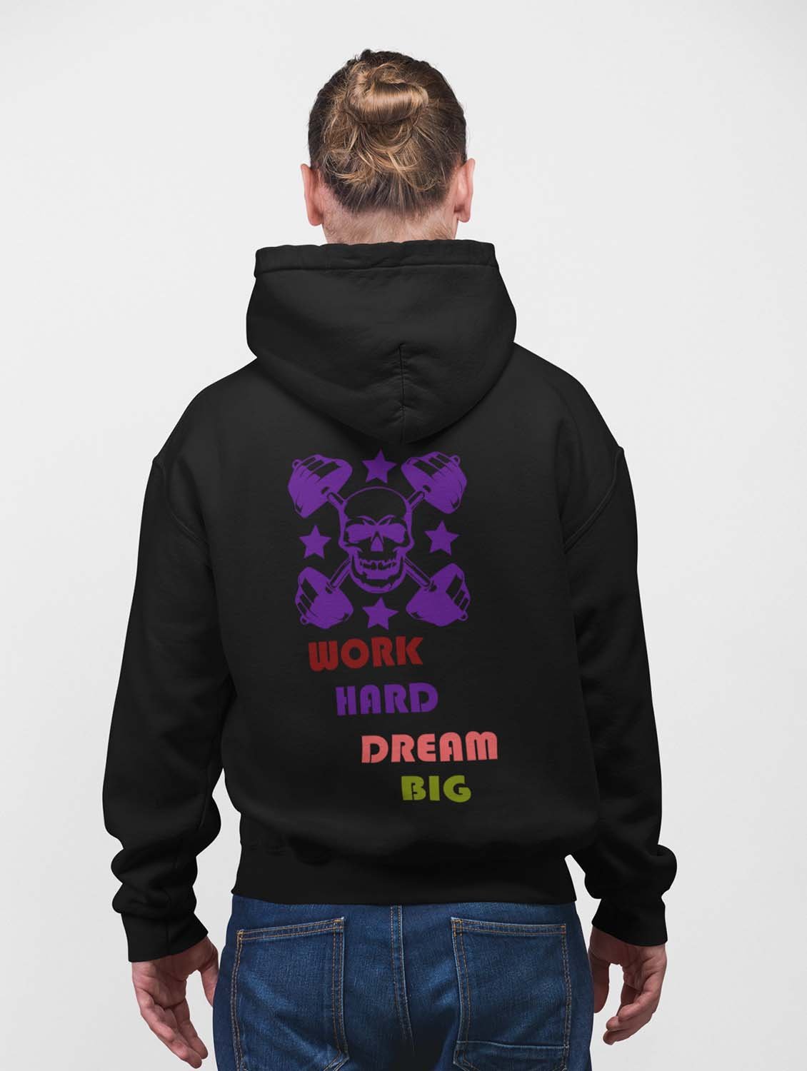 Work Hard, Dream Big, (BG Violet Skull)printed artswear black hoodies for winter casual wear specially for Men