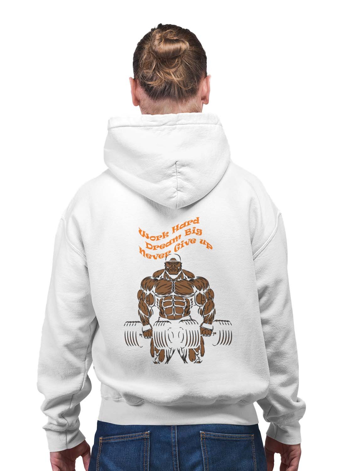 Work Hard Dream Big Orange Text printed artswear white hoodies for winter casual wear specially for Men