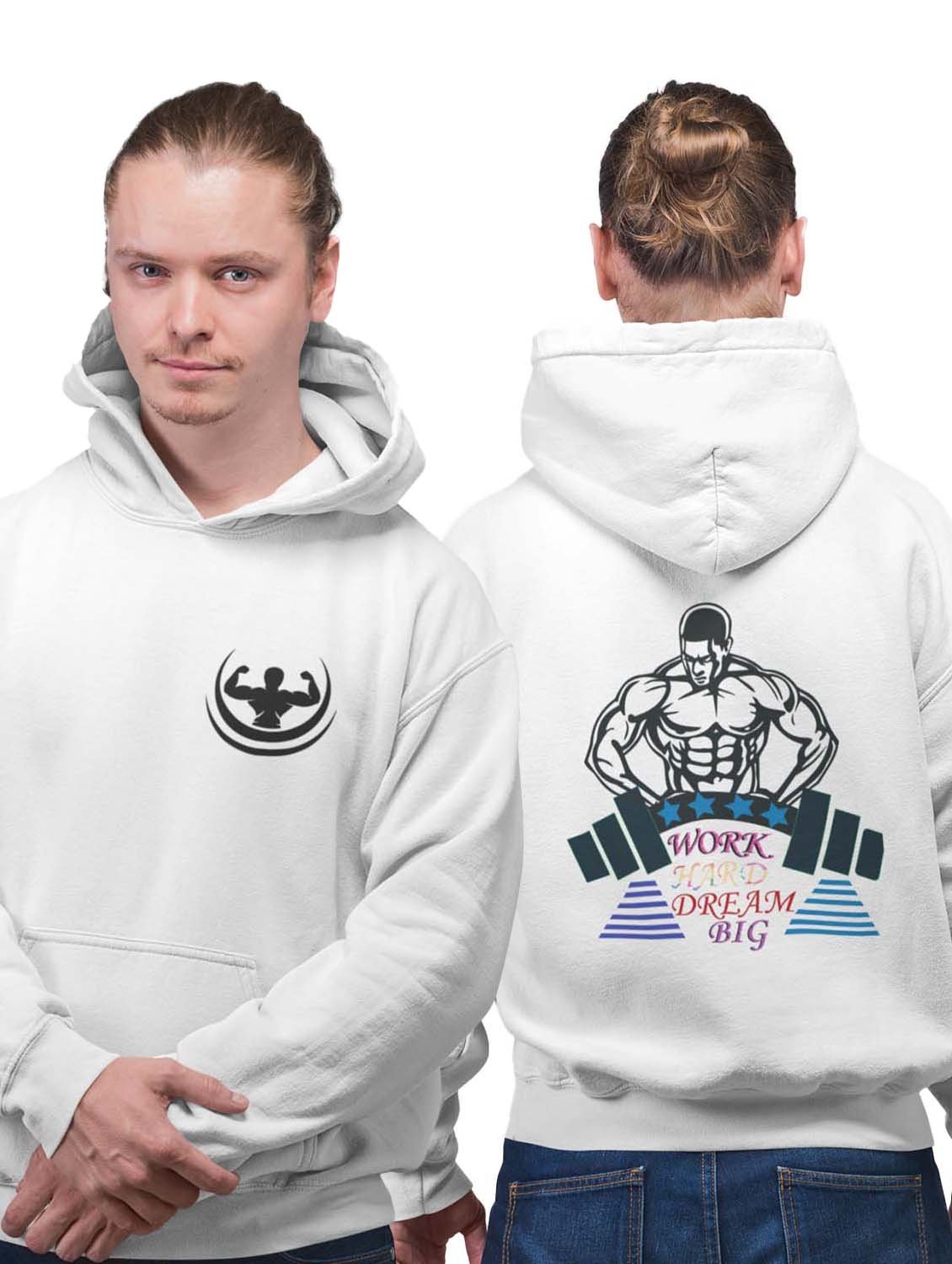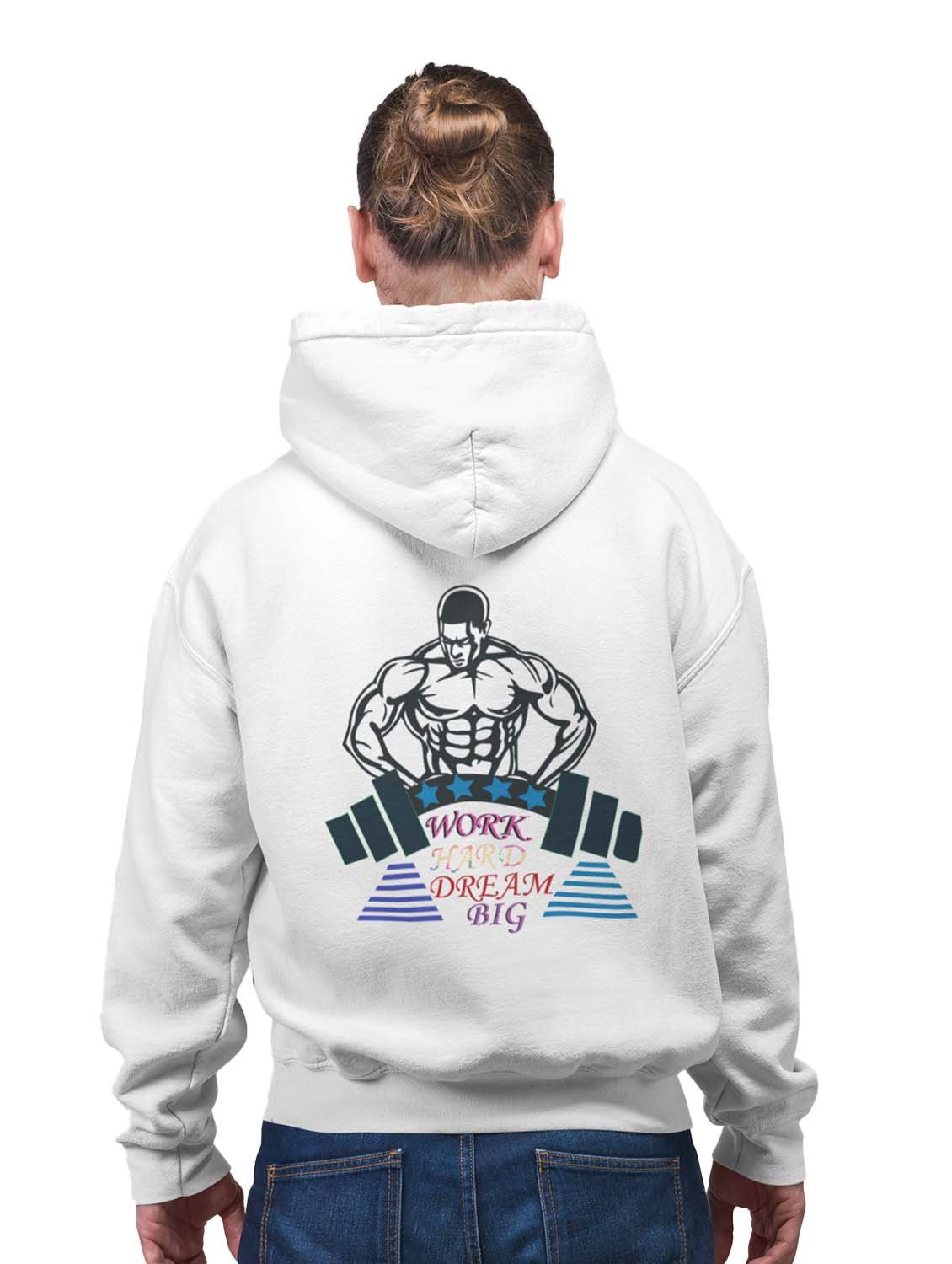 Work Hard, Dream Big, Semi Human printed artswear white hoodies for winter casual wear specially for Men