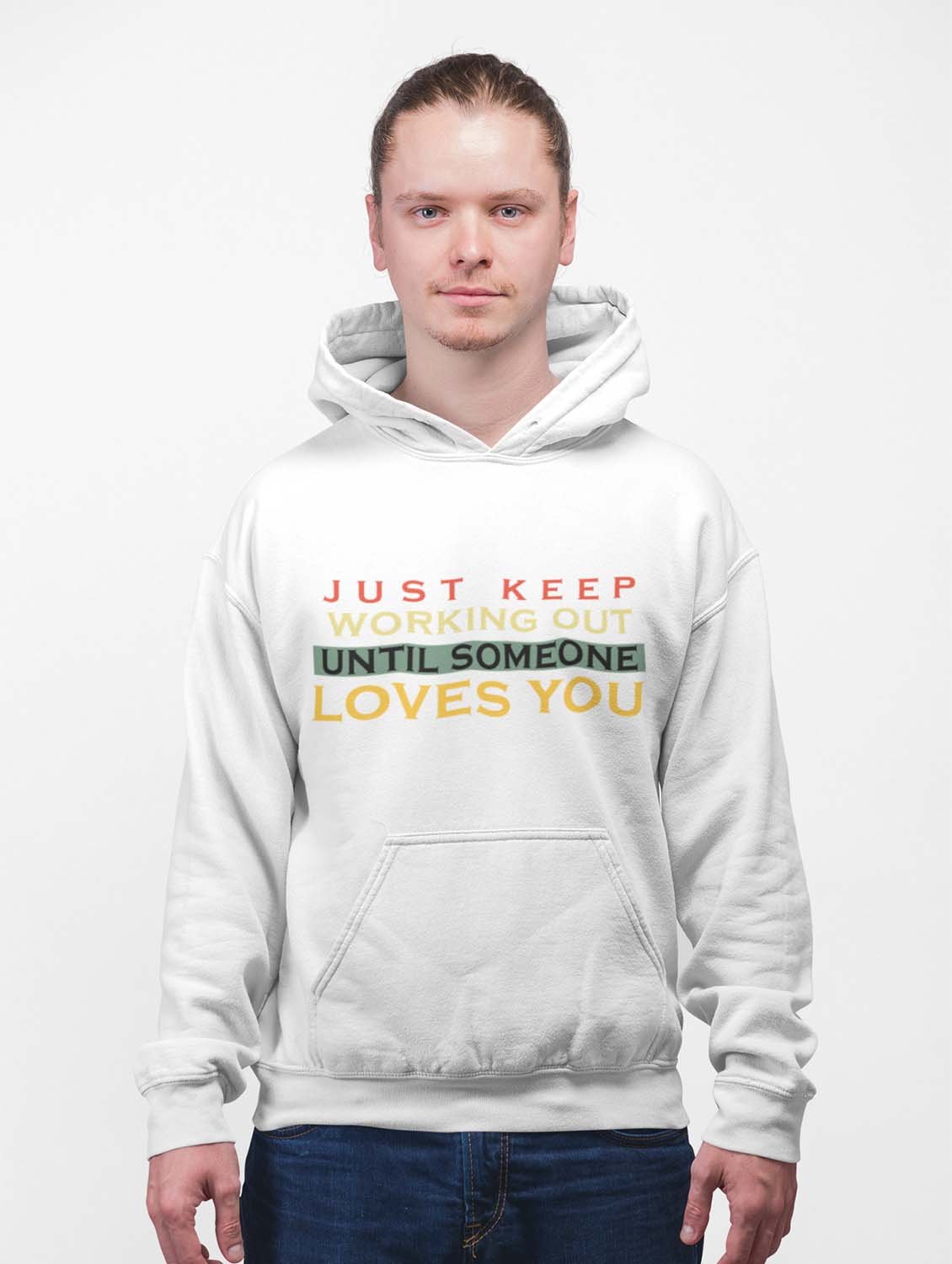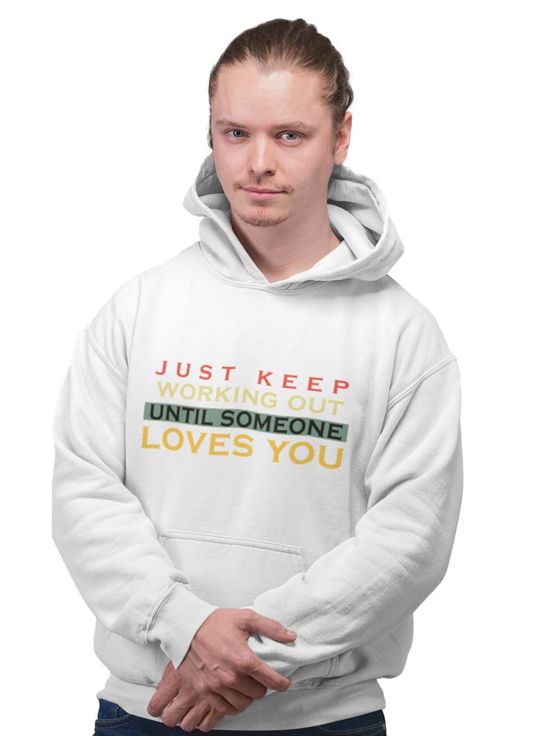 Just keep working out printed artswear white hoodies for winter casual wear specially for Men