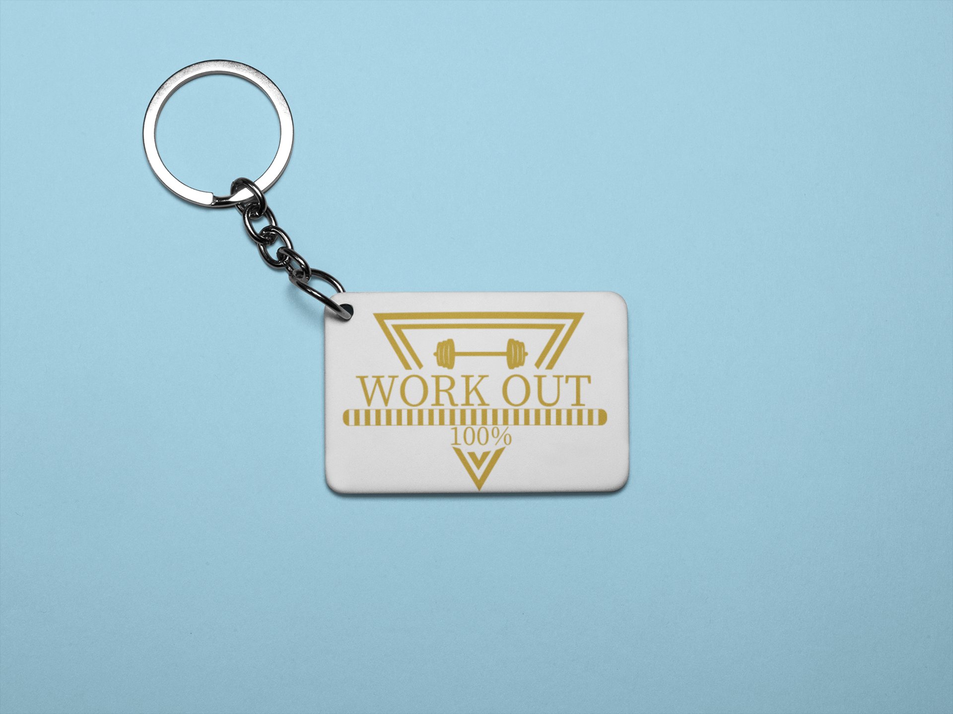 Workout 100%, (BG Golden) - Printed Keychains for gym lovers(Pack of 2)