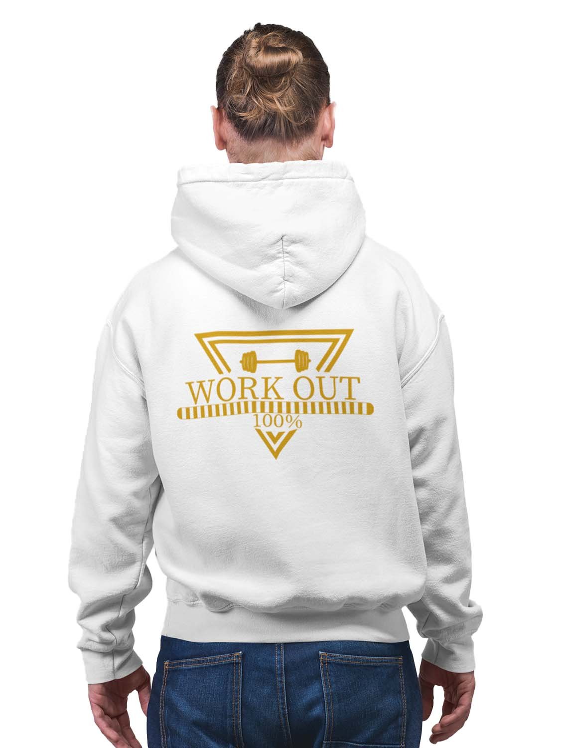 Workout 100%, (BG Golden) printed artswear white hoodies for winter casual wear specially for Men