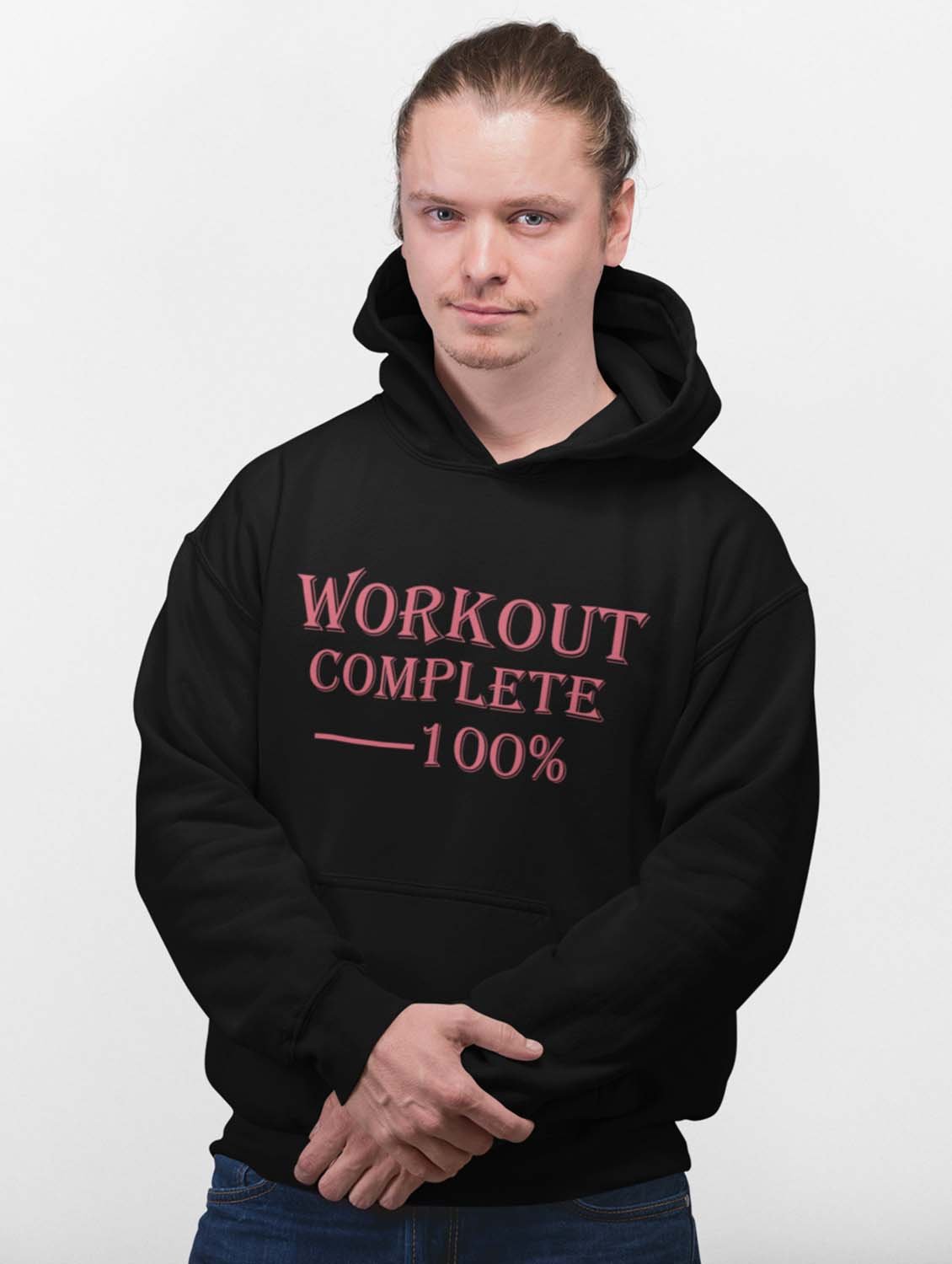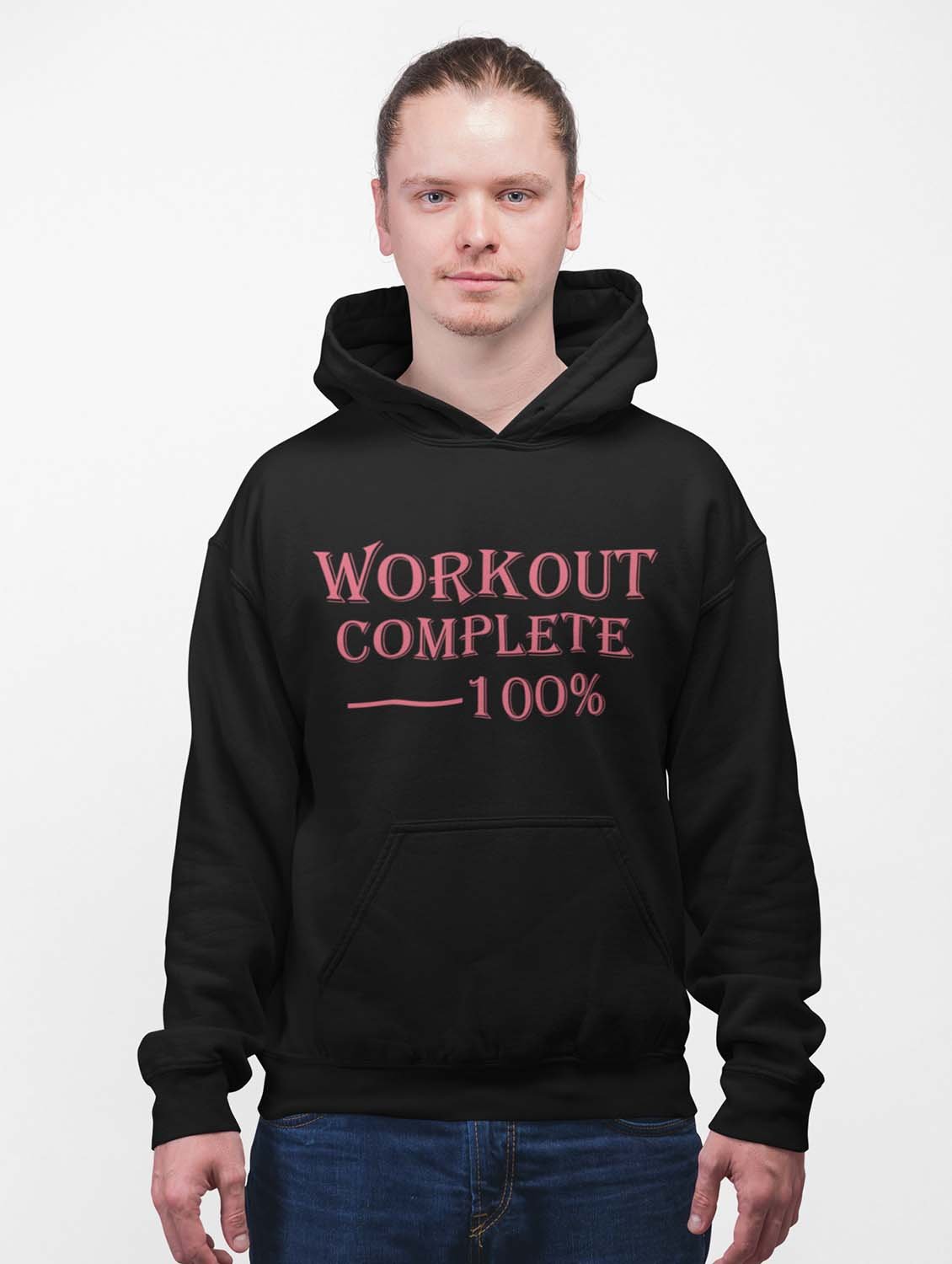 Workout Complete 100%, (BG Pink) printed black hoodies for winter casual wear specially for Men