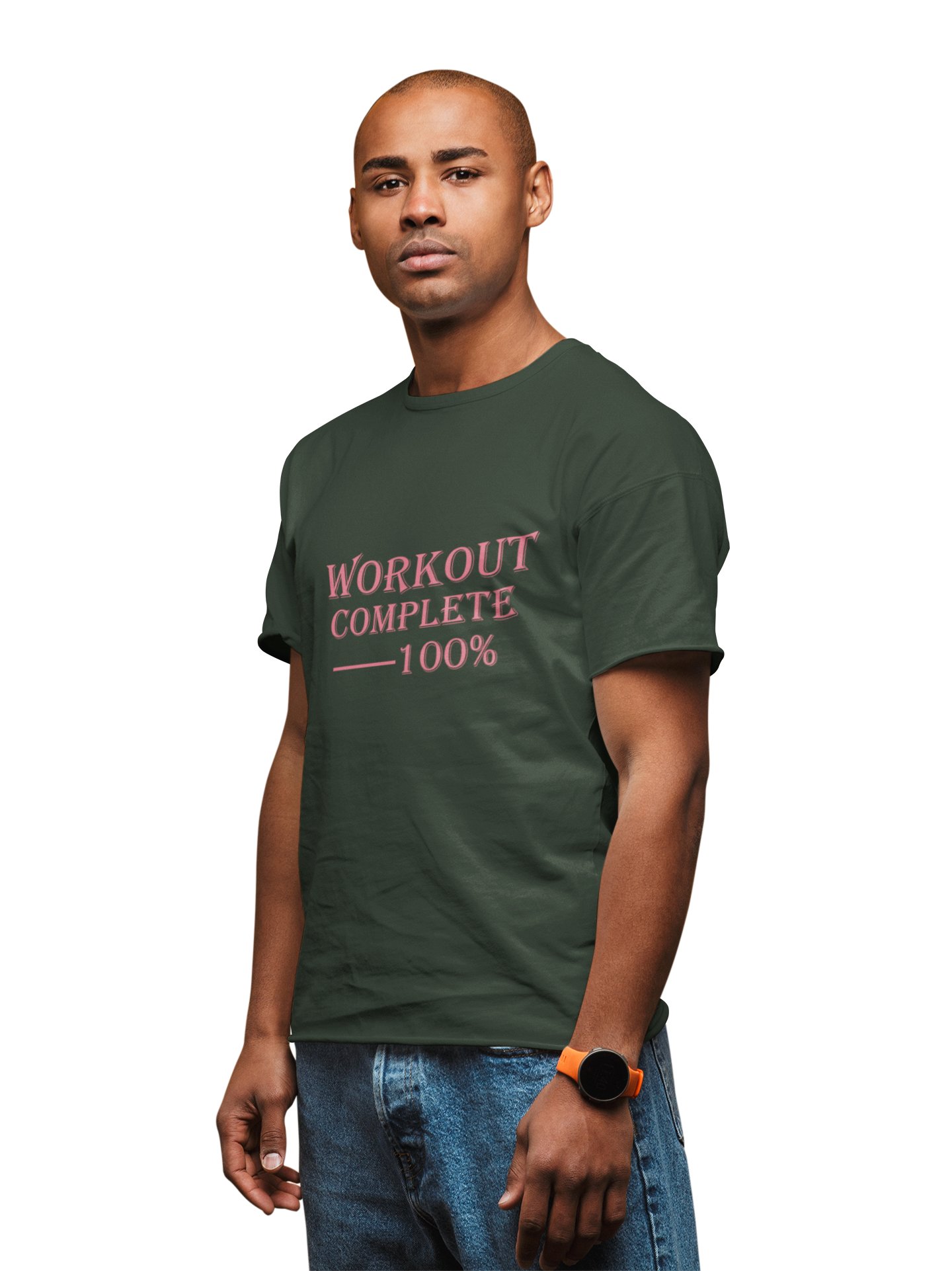 Workout Complete 100%, (BG Pink), Round Neck Gym Tshirt - Foremost Gifting Material for Your Friends and Close Ones