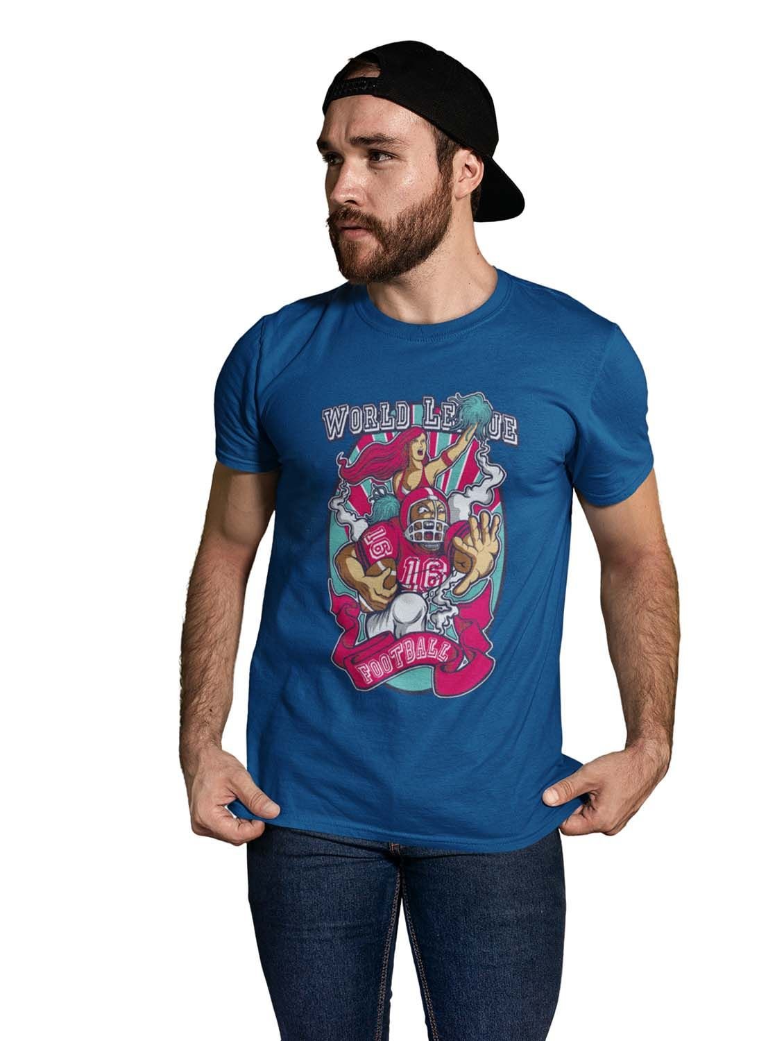 Hip-Hop Drip Blue Round Neck Cotton Half Sleeved T-Shirt with Printed Graphics