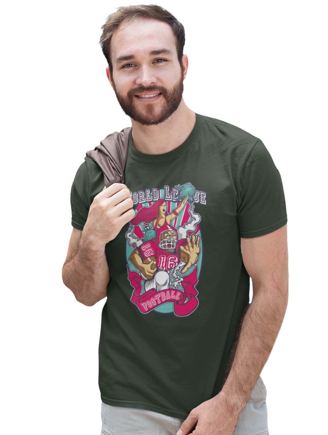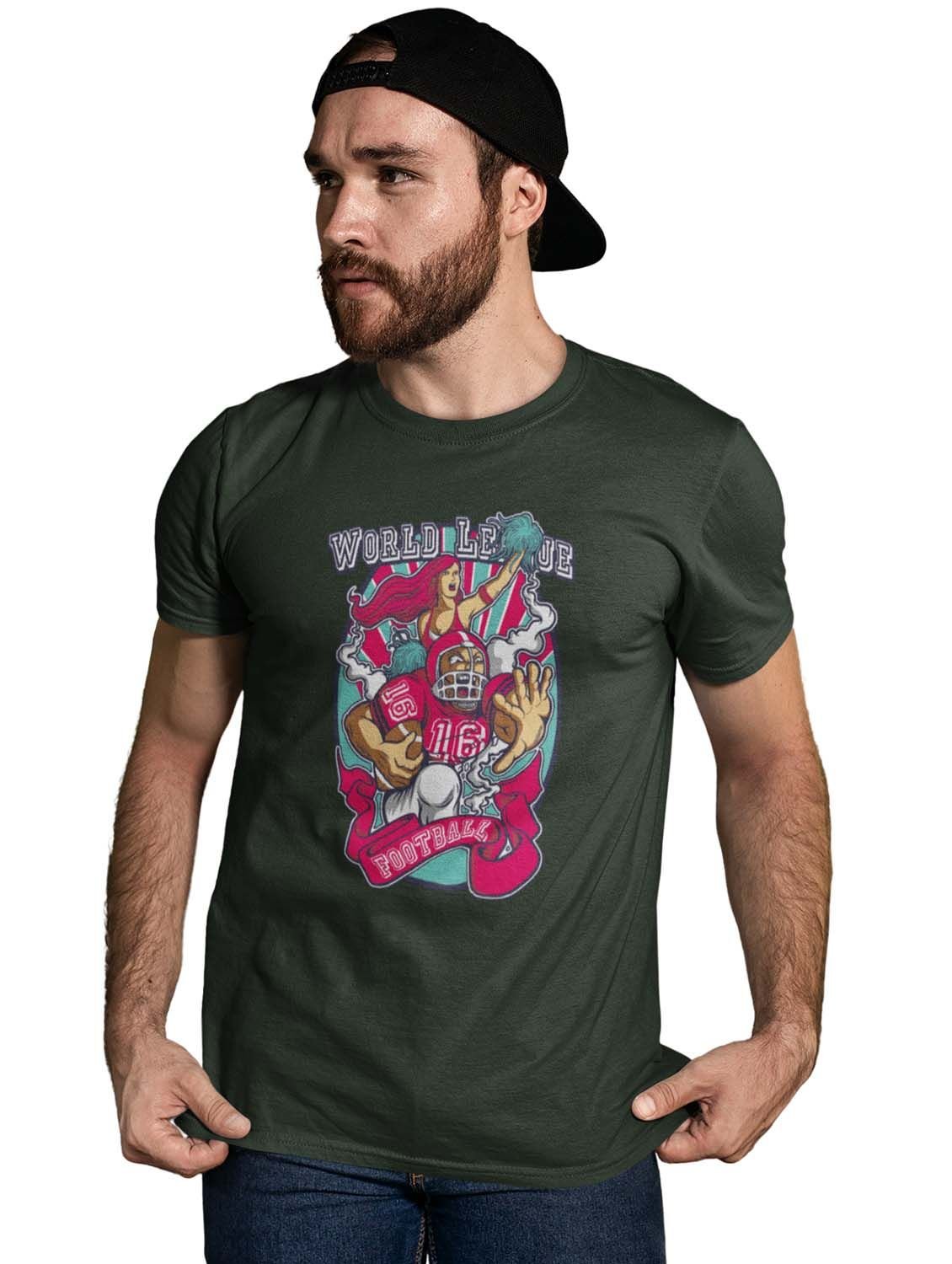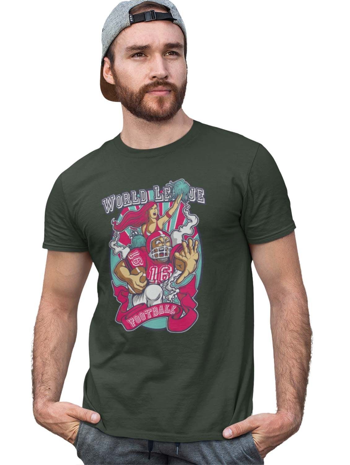 World Football League Round Neck Cotton Half Sleeved T-Shirt with Printed Graphics
