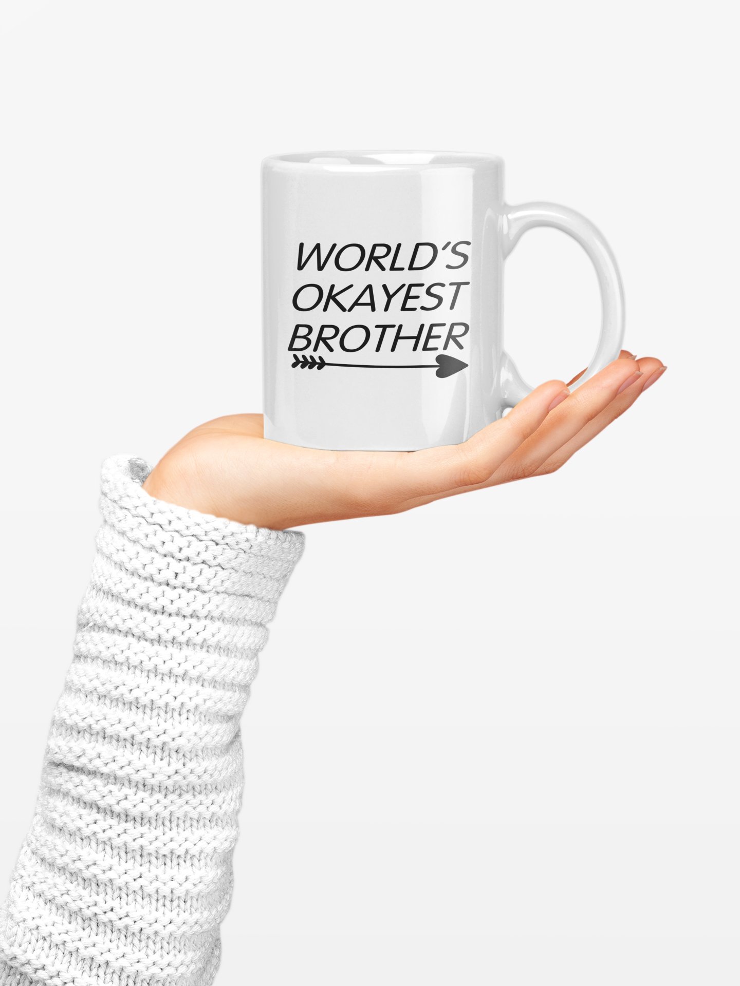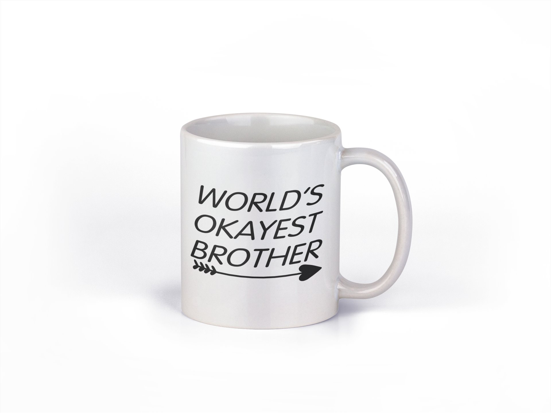 World's okayest brother - family themed printed ceramic white coffee and tea mugs/ cups
