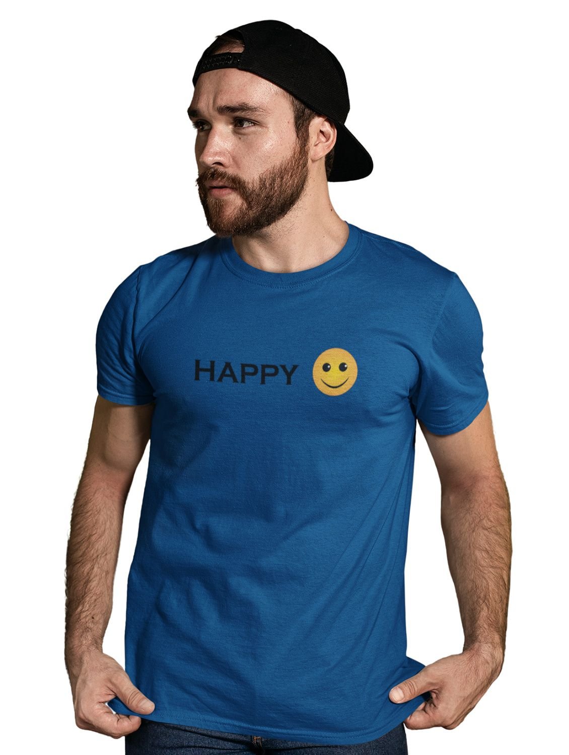 Written Happy Text with Emoji T-shirt - Clothes for Emoji Lovers - Suitable for Fun Events - Foremost Gifting Material for Your Friends and Close Ones