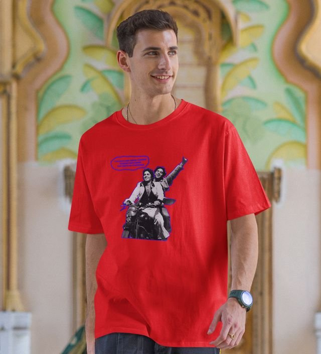 Ye Dostiiii!!!! Red Round Neck Cotton Half Sleeved Men T-Shirt with Printed Graphics
