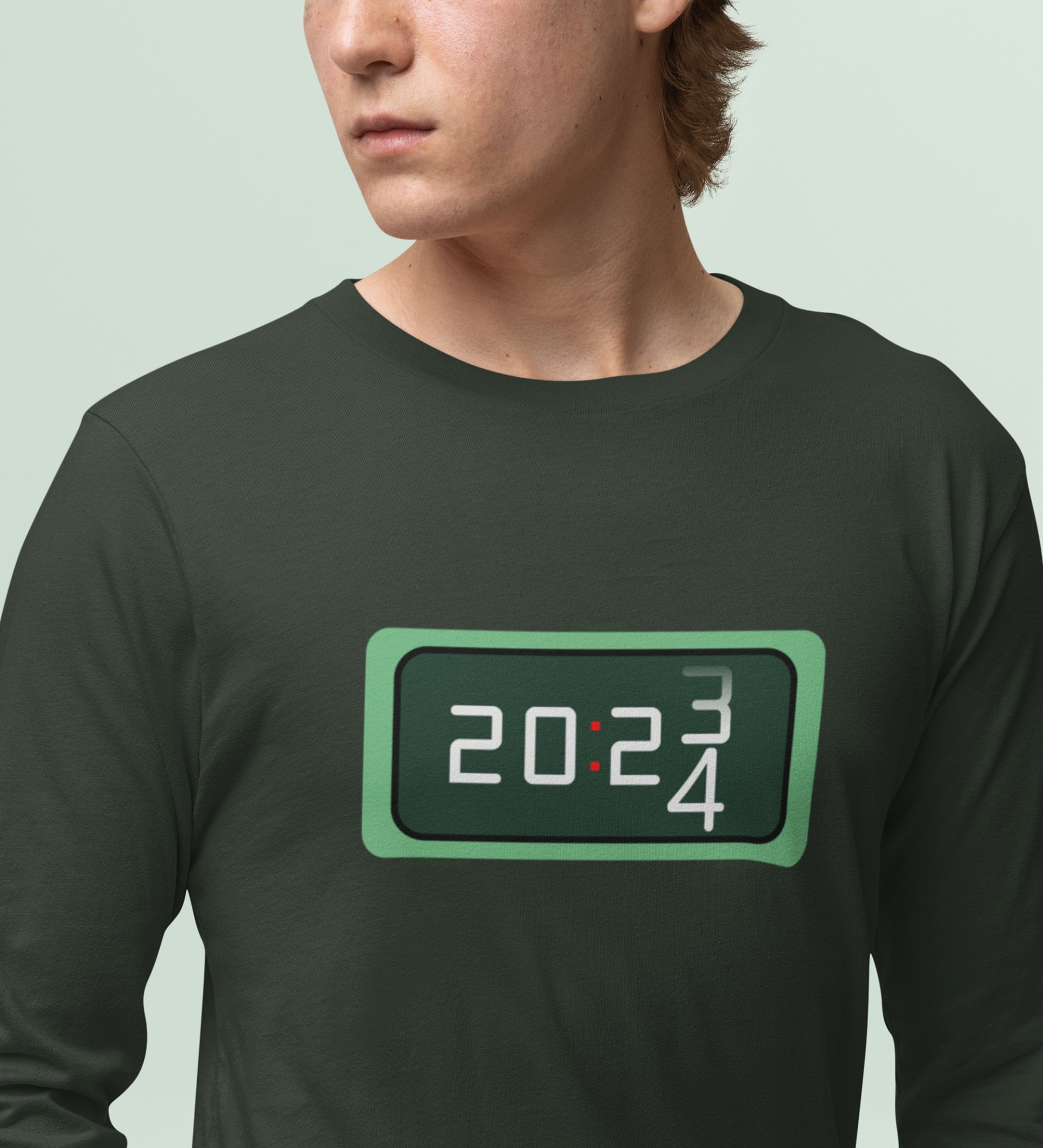 Year Changing Clock: Beautifully DesignedFull Sleeve T-shirt Green Best Gift For Secret Santa