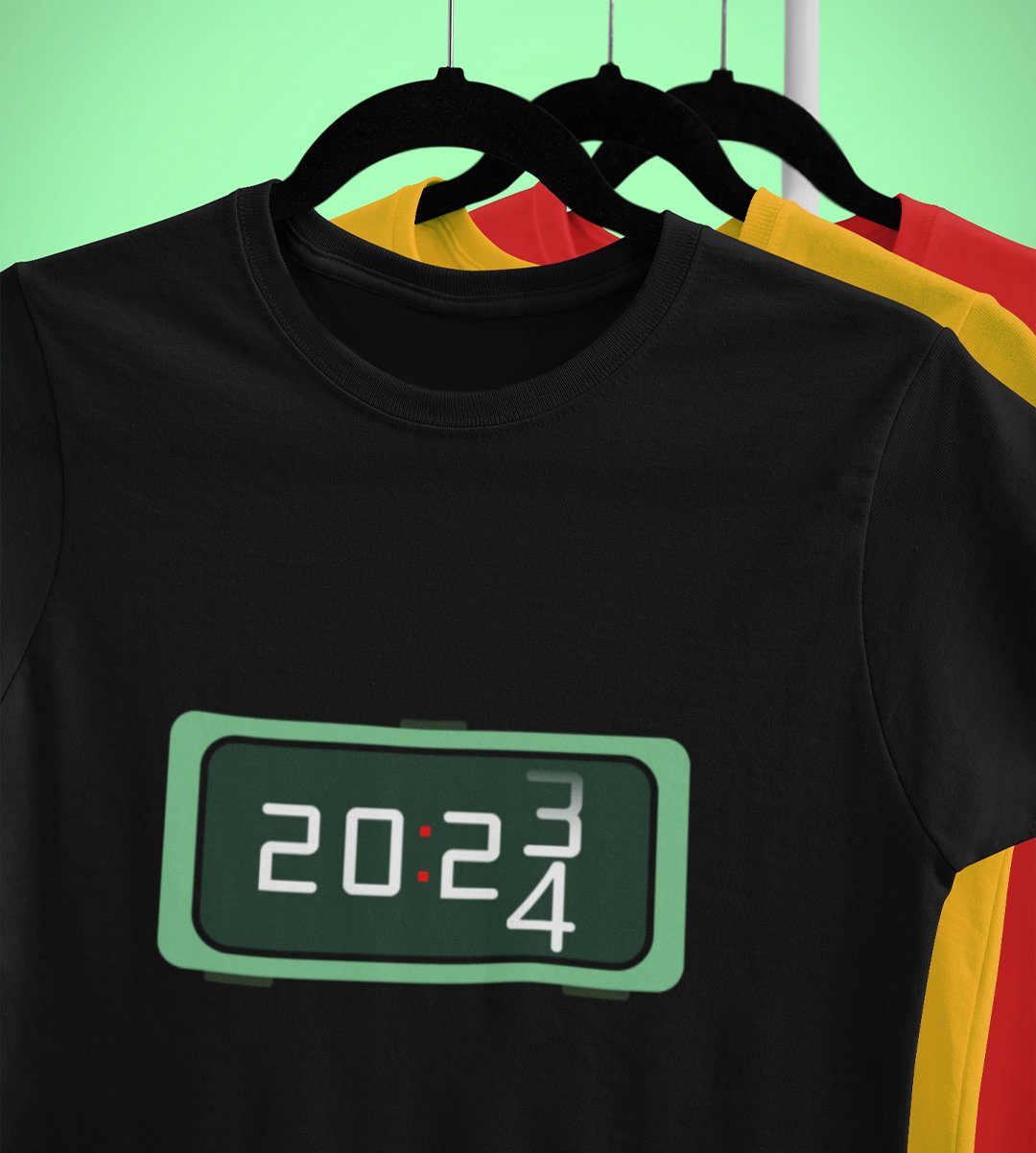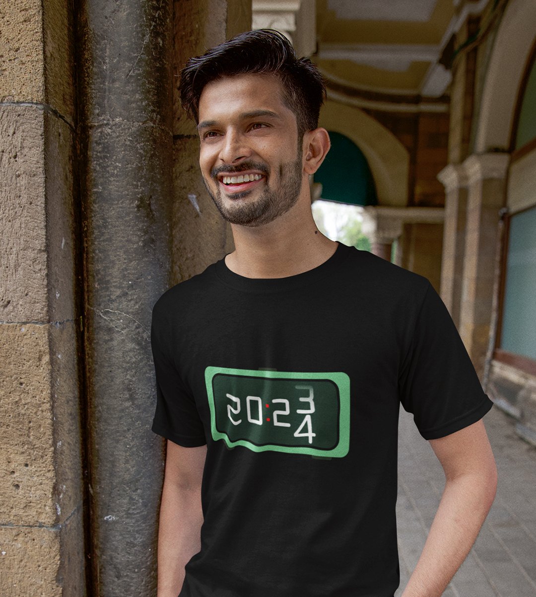 Year Changing Clock : New Year Printed T-shirt (Black) Best Gift For Secret Santa