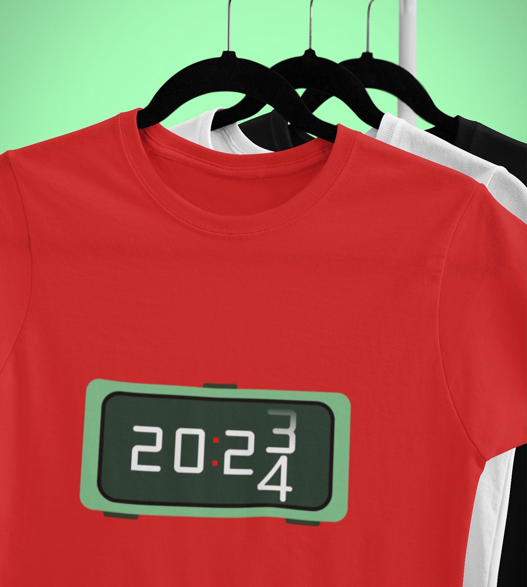 Year Changing Clock : New Year Printed T-shirt (Red) Best Gift For Secret Santa