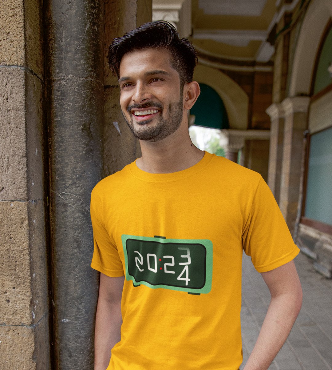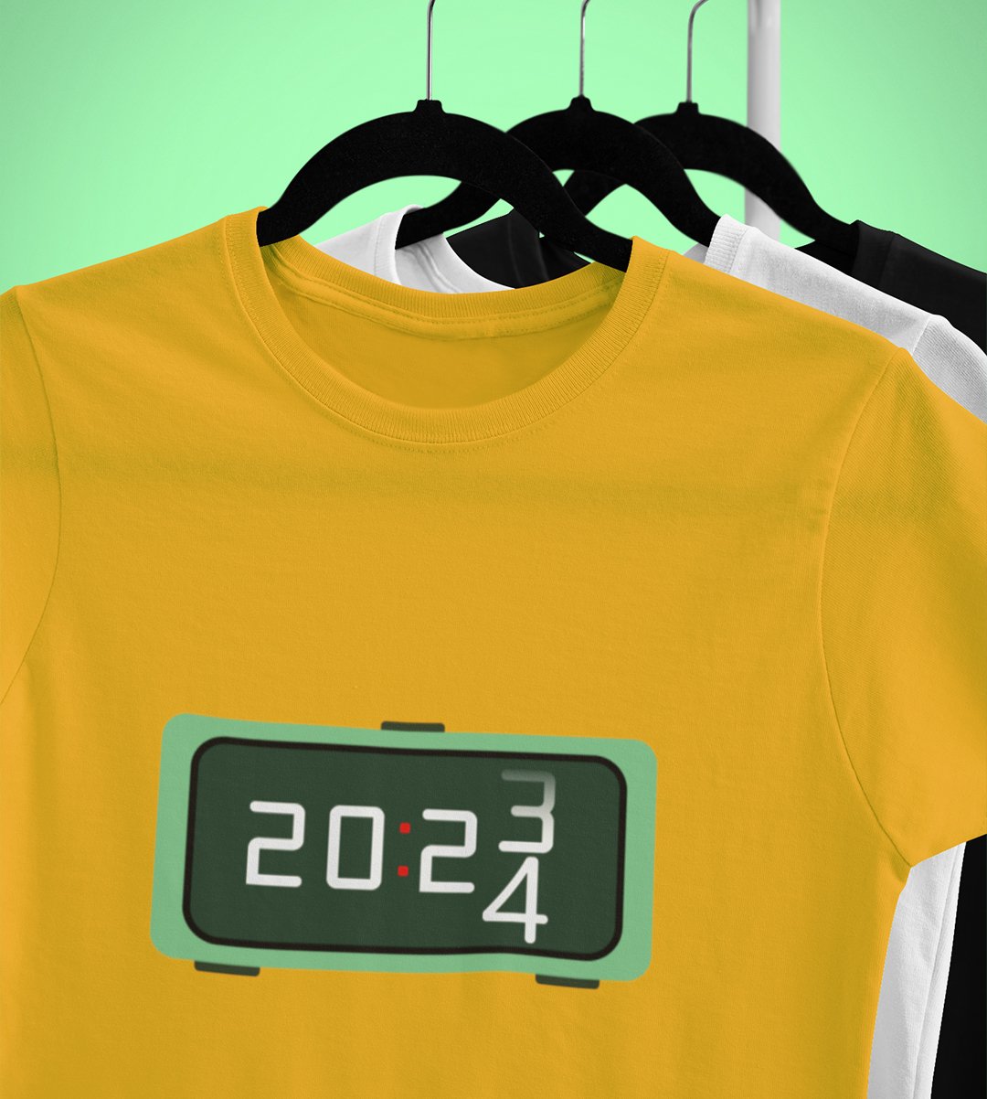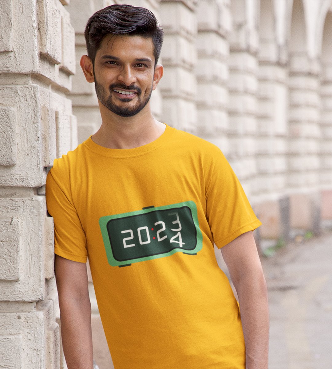 Year Changing Clock : New Year Printed T-shirt (Yellow) Best Gift For Secret Santa