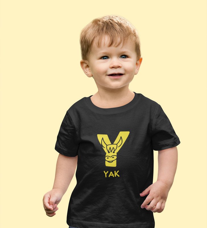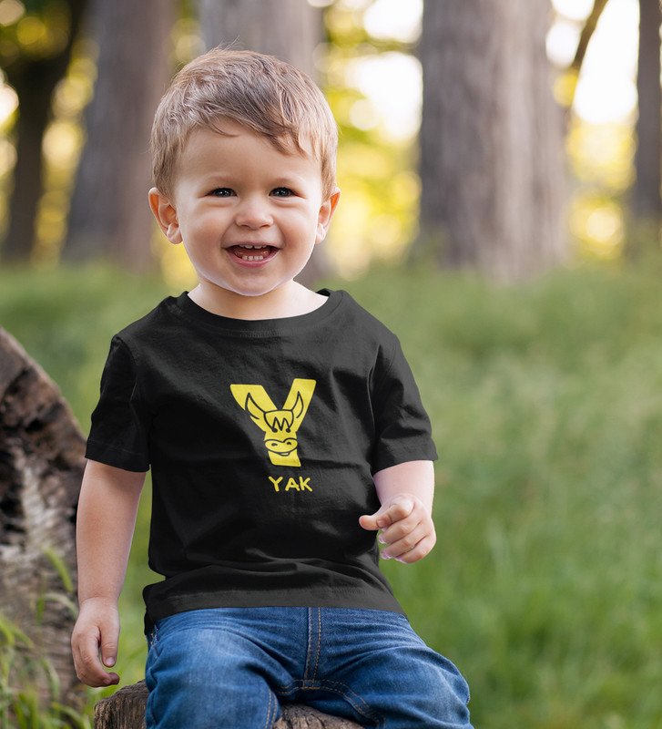 Yellow Yak, Printed Cotton Tshirt (black) for Boys