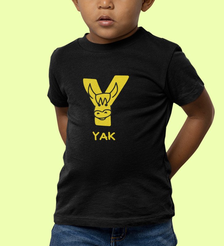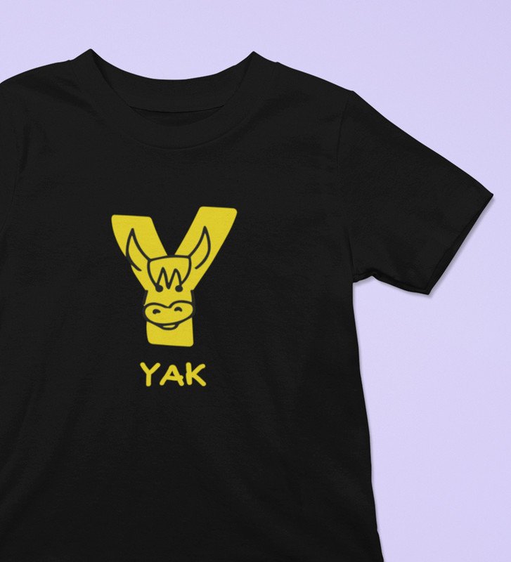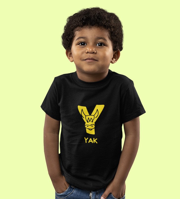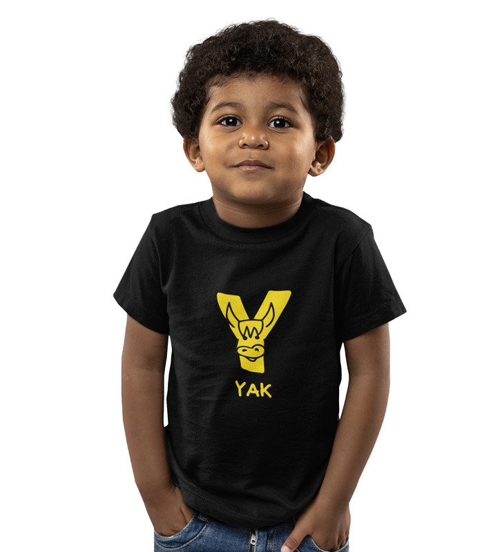 Yellow Yak, Printed Cotton Tshirt (Black) for Boys