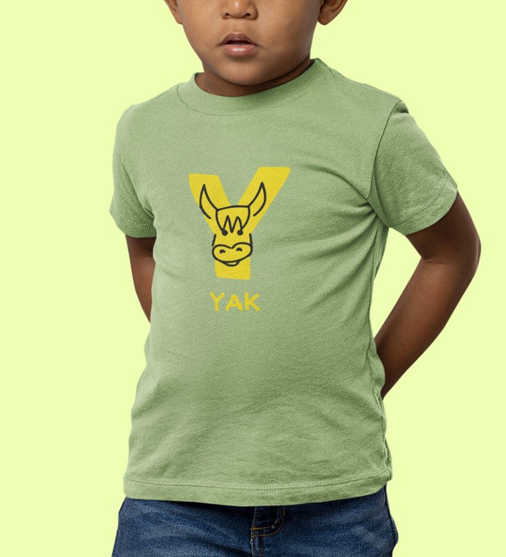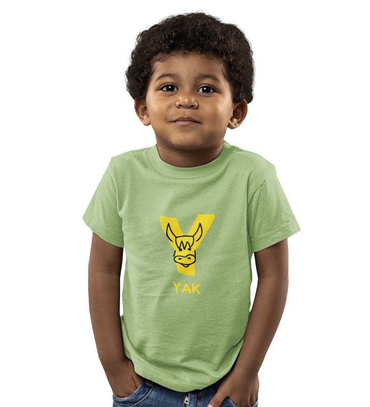 Yellow Yak, Printed Cotton Tshirt (Olive) for Boys