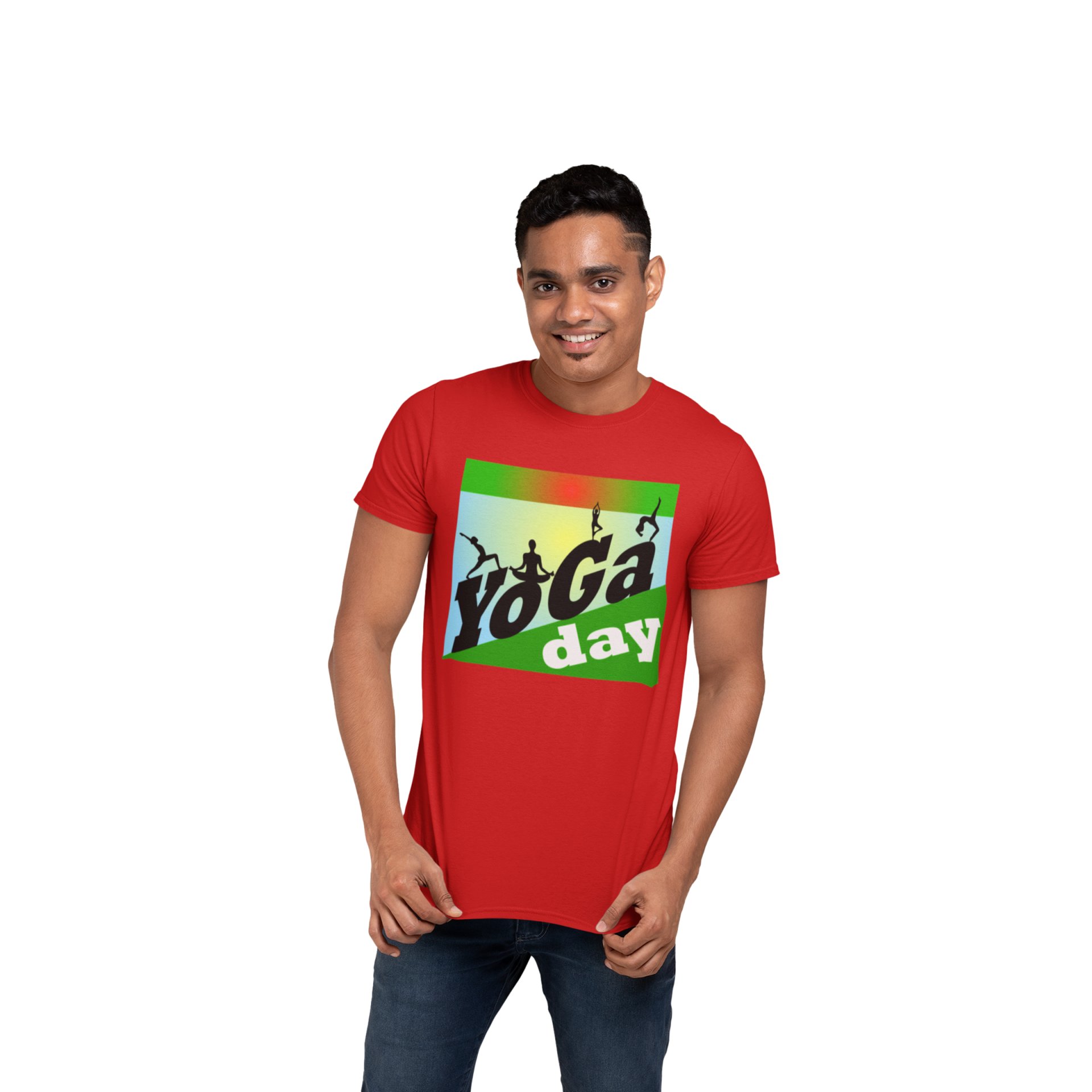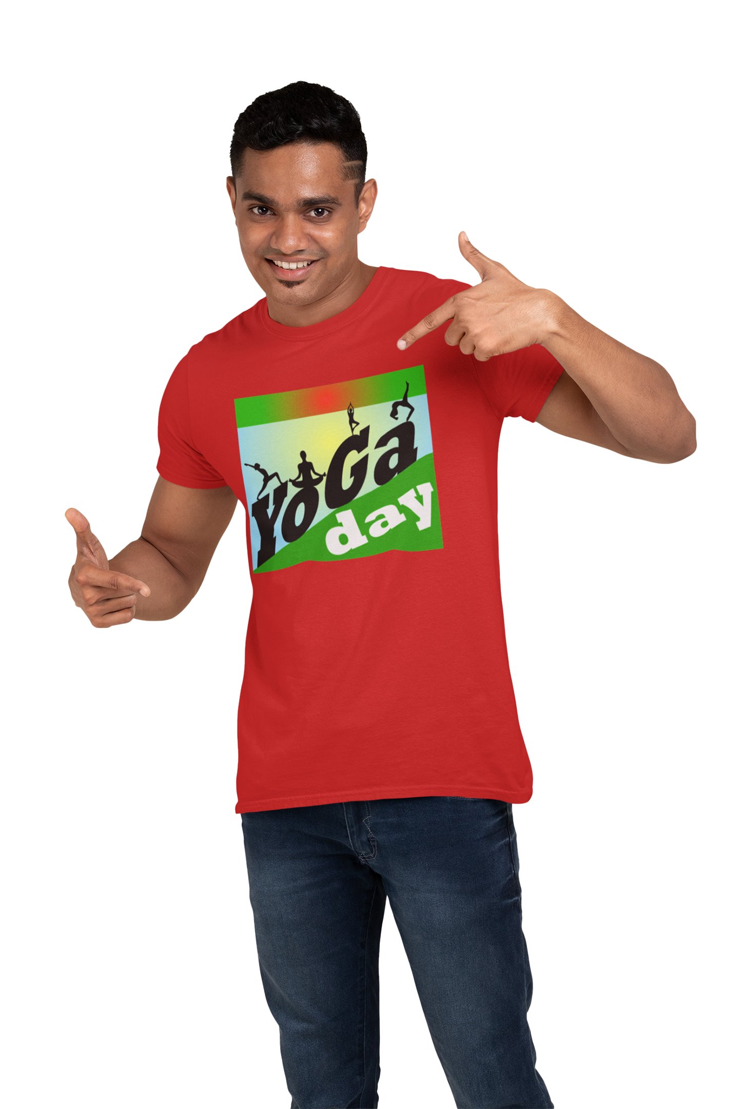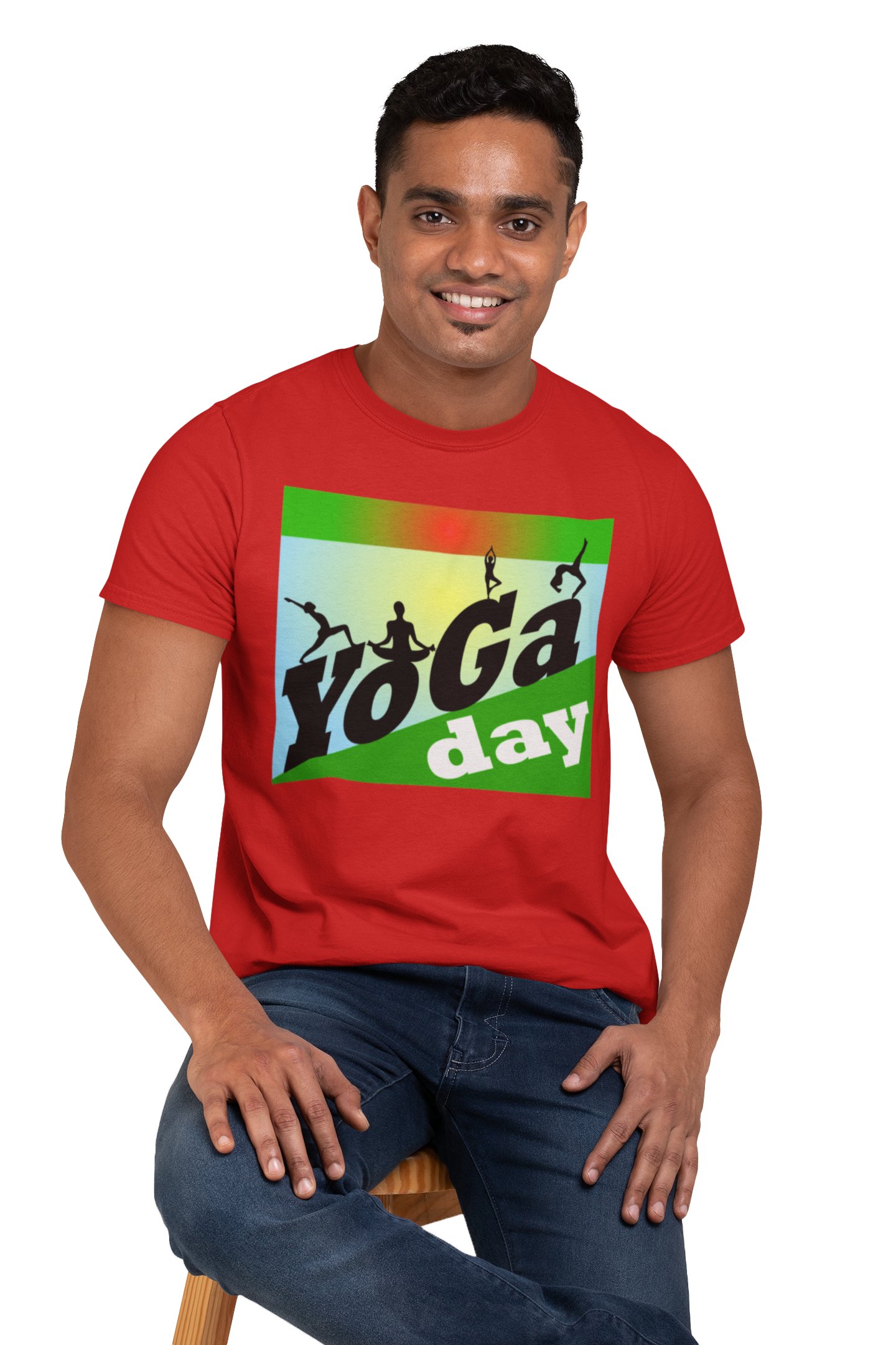 Yoga Day green - Red - Comfortable Yoga T-shirts for Yoga Printed Men's T-shirts (Small, Red)