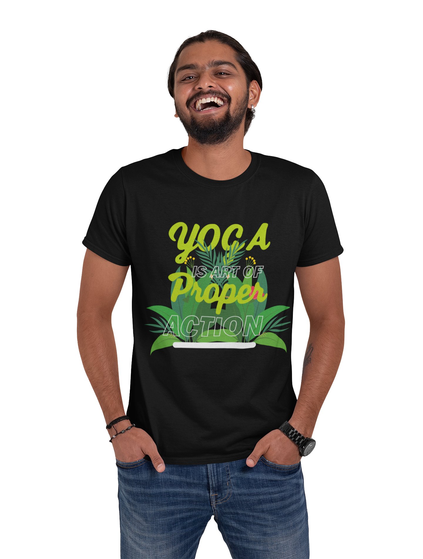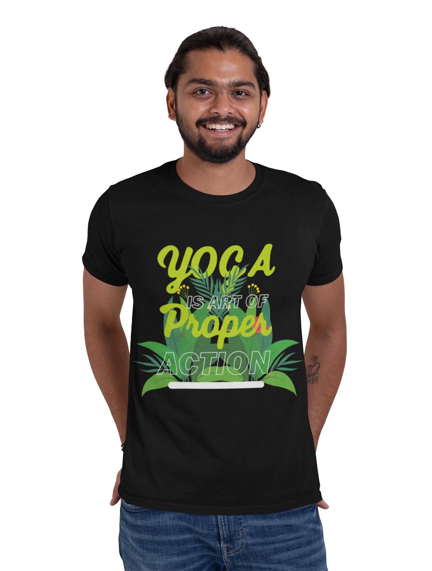 Yoga is Art of Proper Action - Black - Comfortable Yoga T-shirts for Yoga Printed Men's T-shirts (Medium, Black)