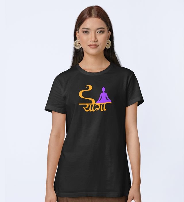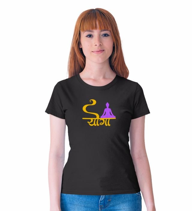 Yoga Is Enough Black Round Neck Cotton Half Sleeved WomenT-Shirt with Printed Graphics