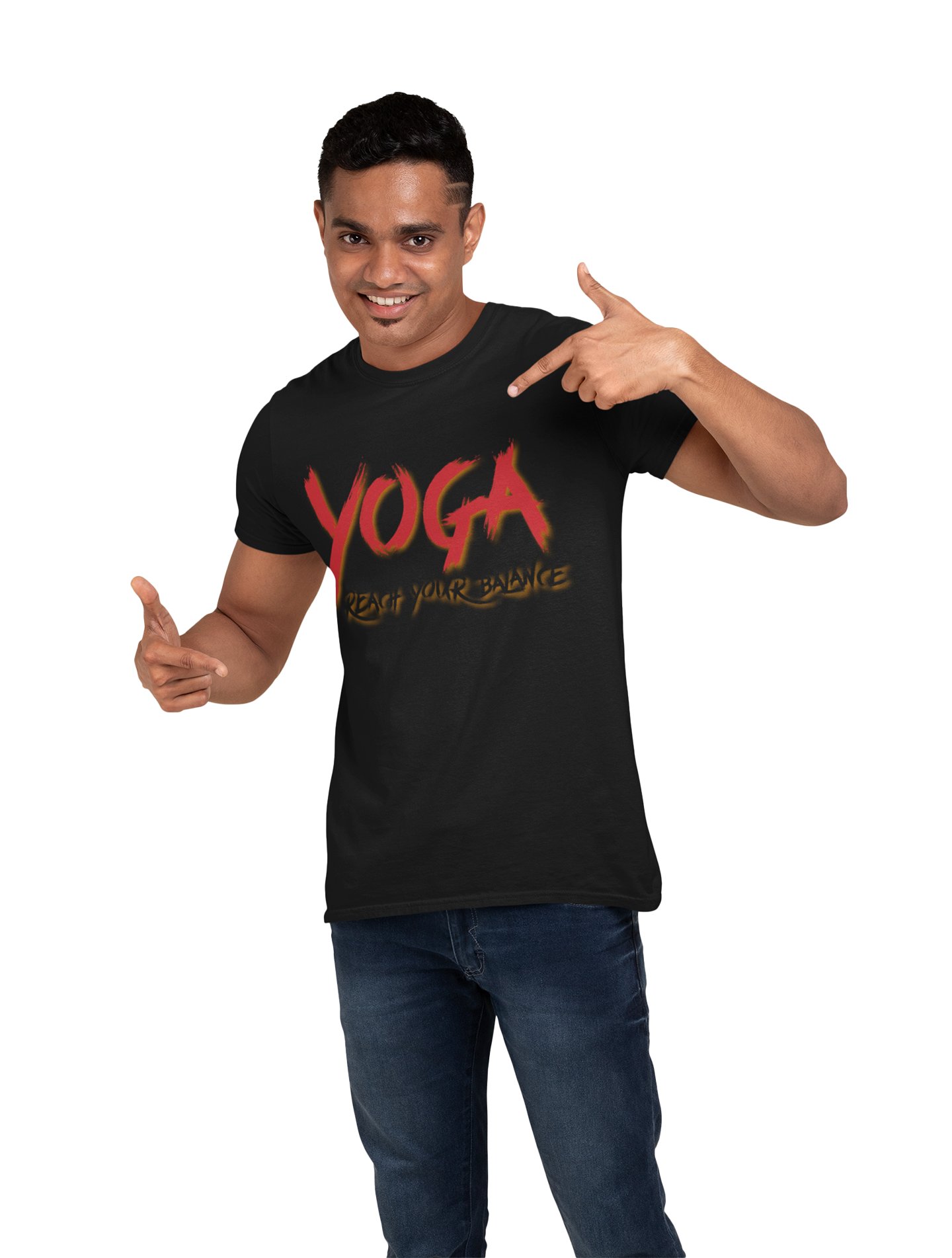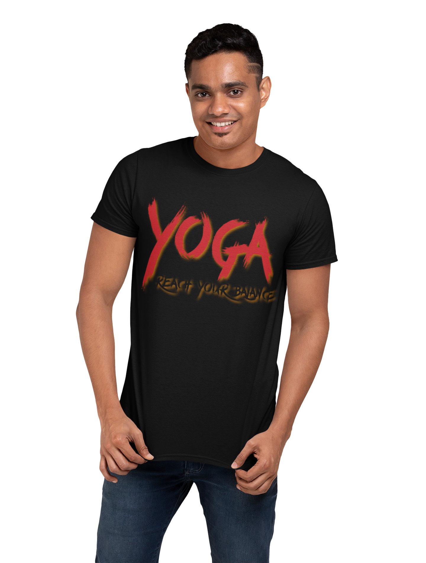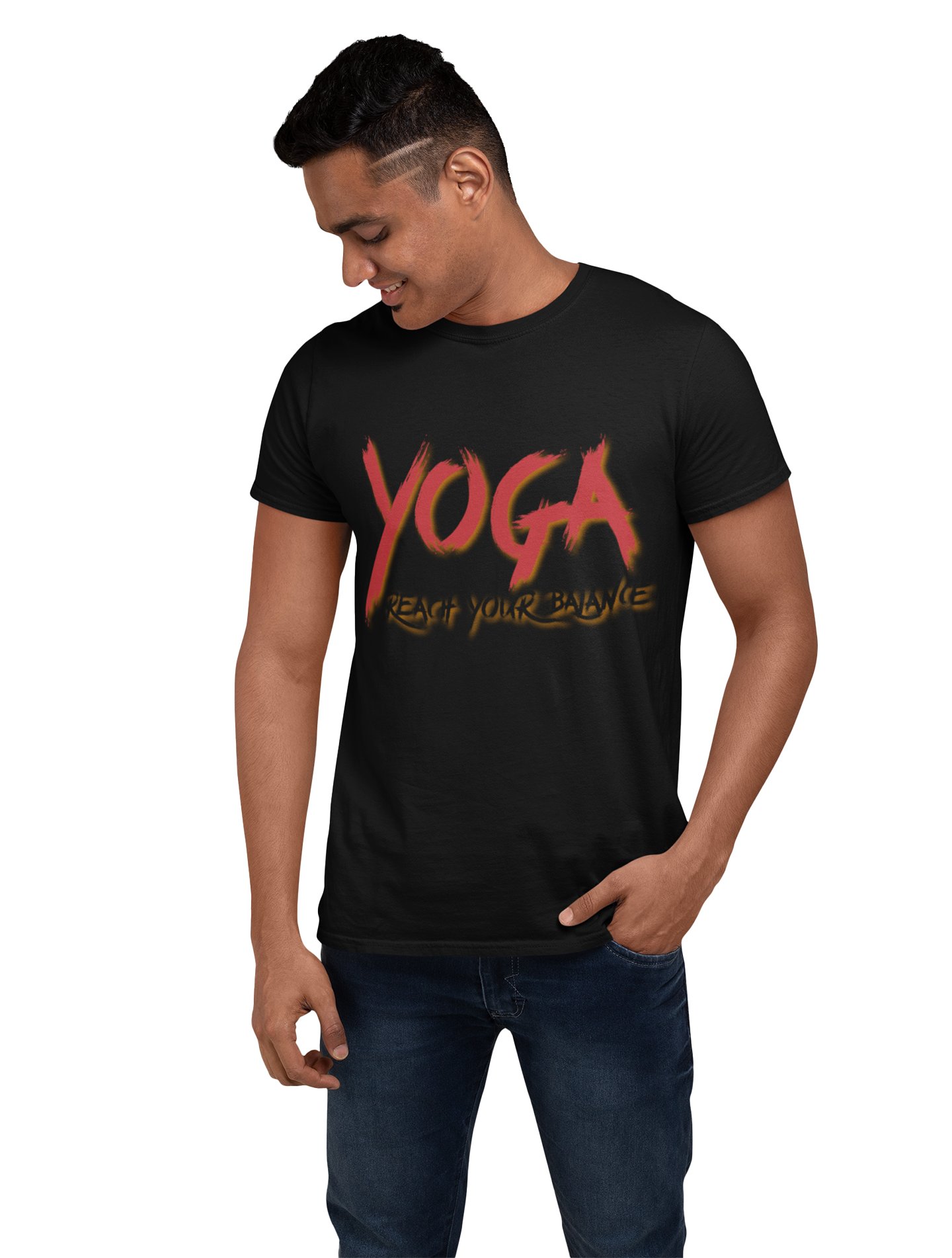 Yoga Reach your balance - Black - Comfortable Yoga T-shirts for Yoga Printed Men's T-shirts (Medium, Black)