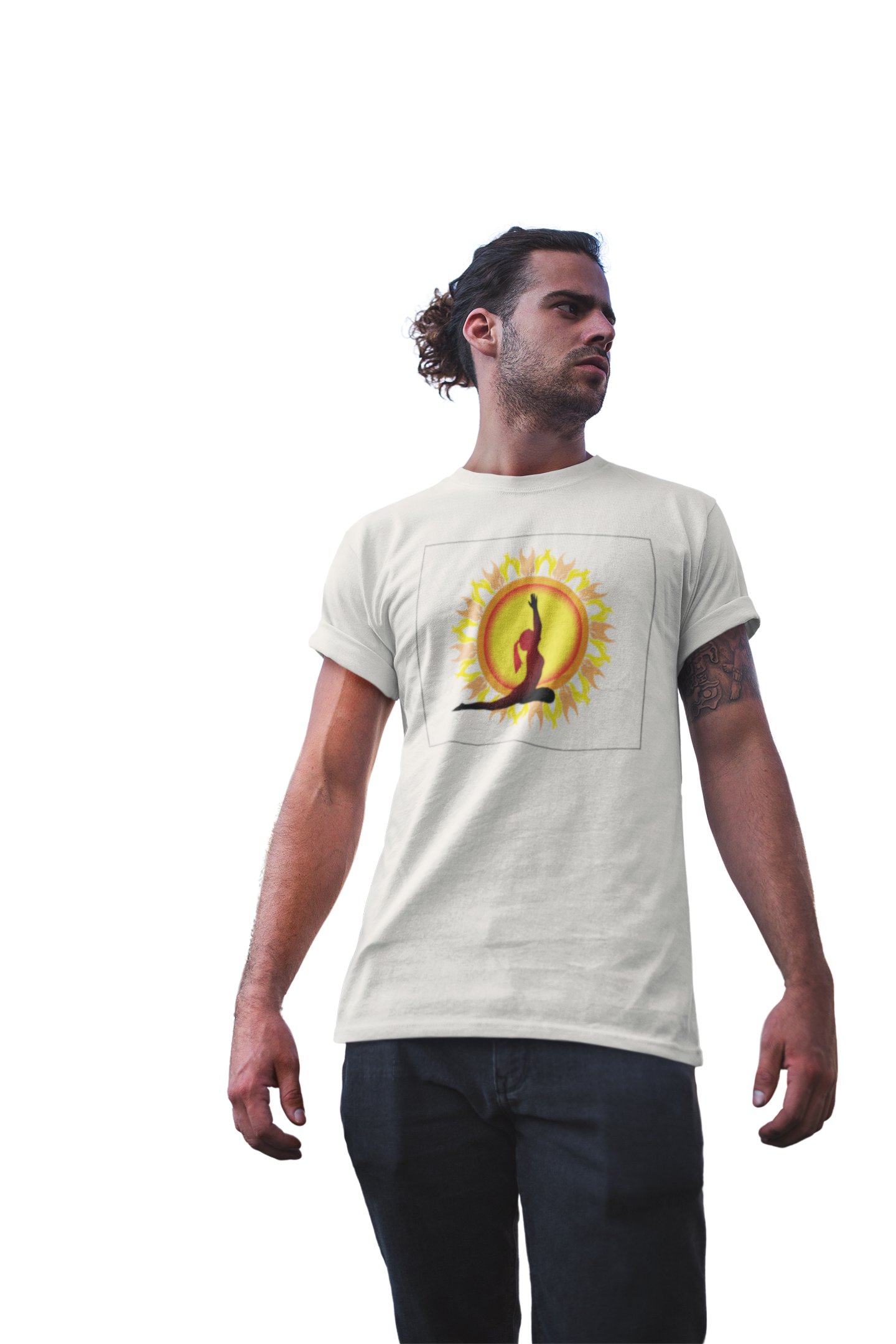 Yoga sun in background - White - Comfortable Yoga T-shirts for Yoga Printed Men's T-shirts White