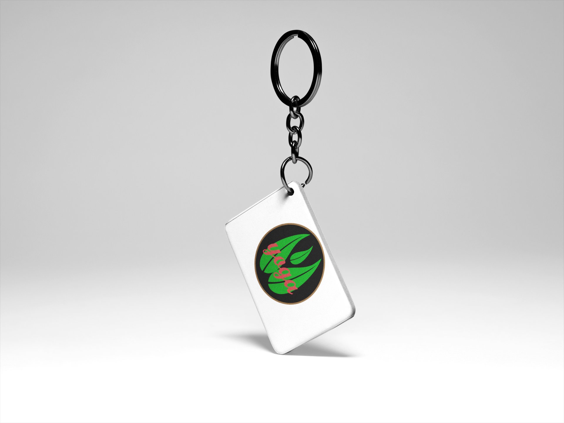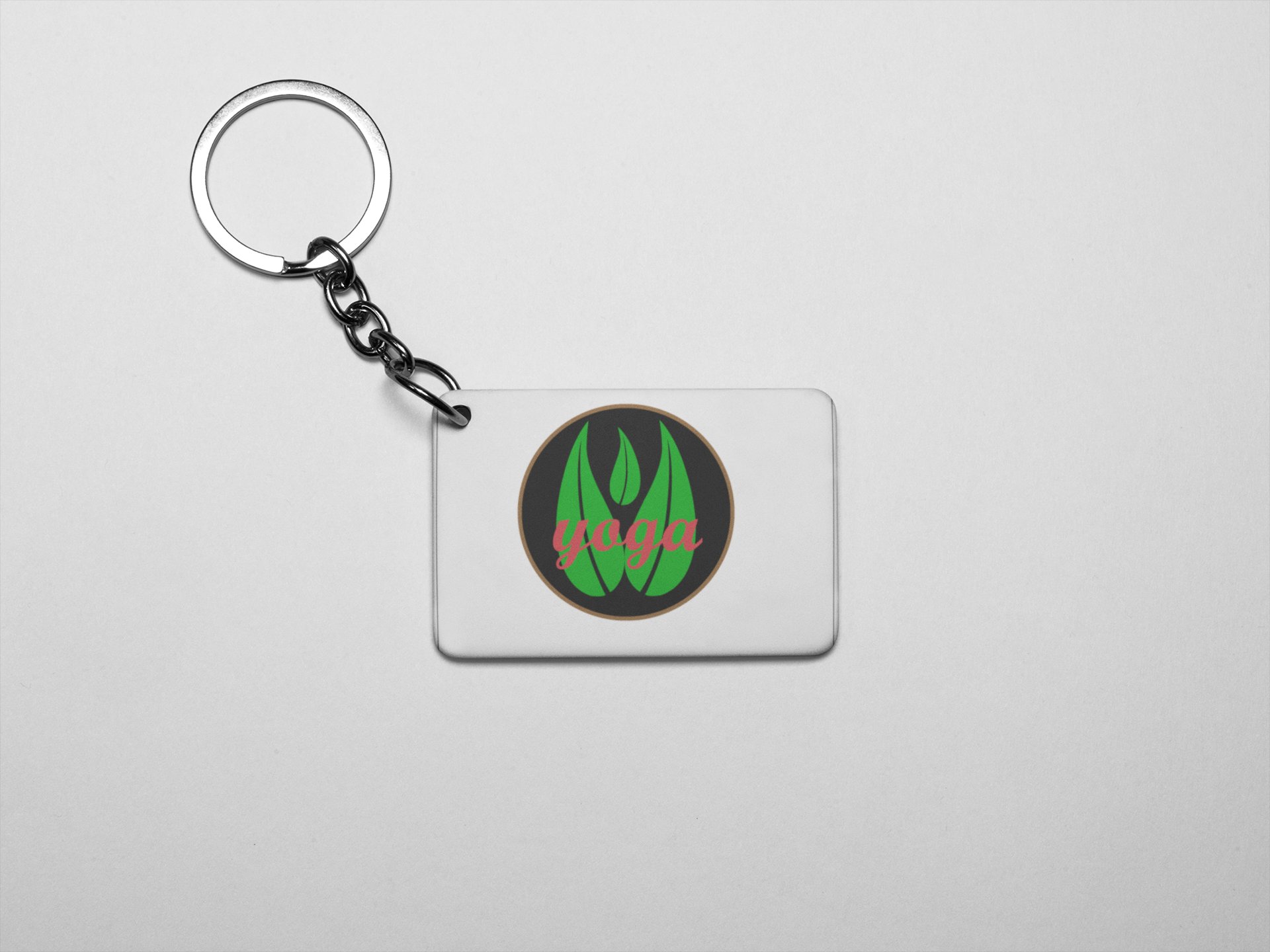 Yoga Text Written Over 3 Leaves, ( BG Green) - Printed Acrylic Keychains(Pack Of 2)