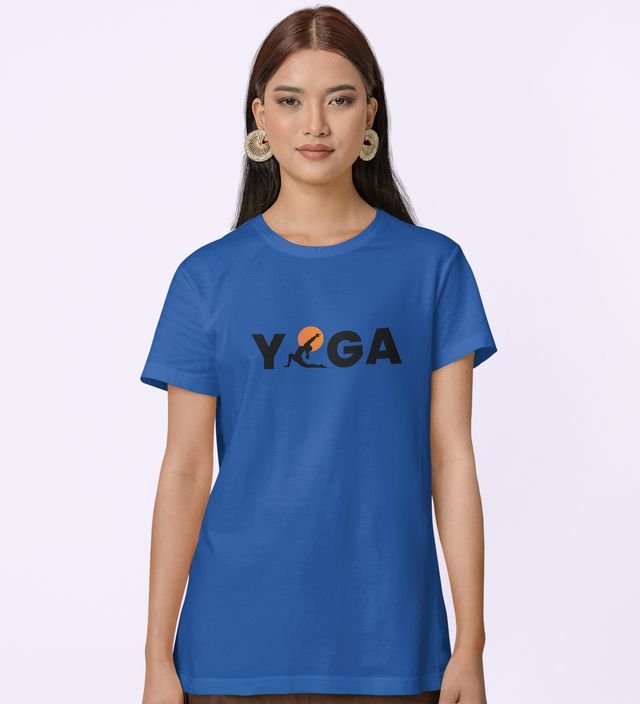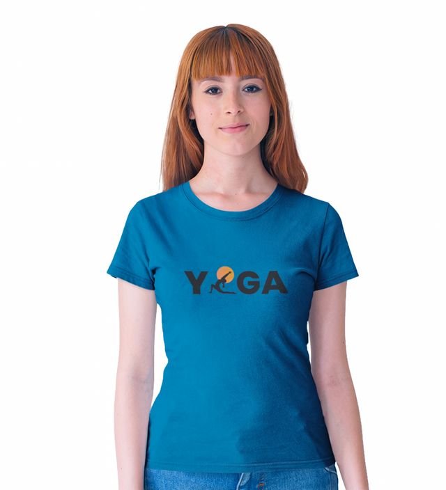 Yoga : The Strongest Path Blue Round Neck Cotton Half Sleeved Women T-Shirt with Printed Graphics