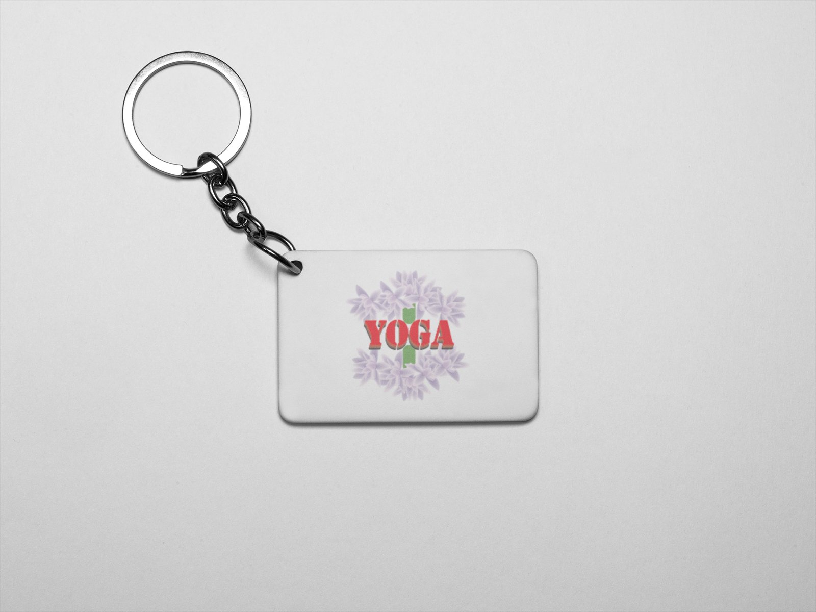 Yoga Text Written In Front Of Violet Flower - Printed Acrylic Keychains(Pack Of 2)