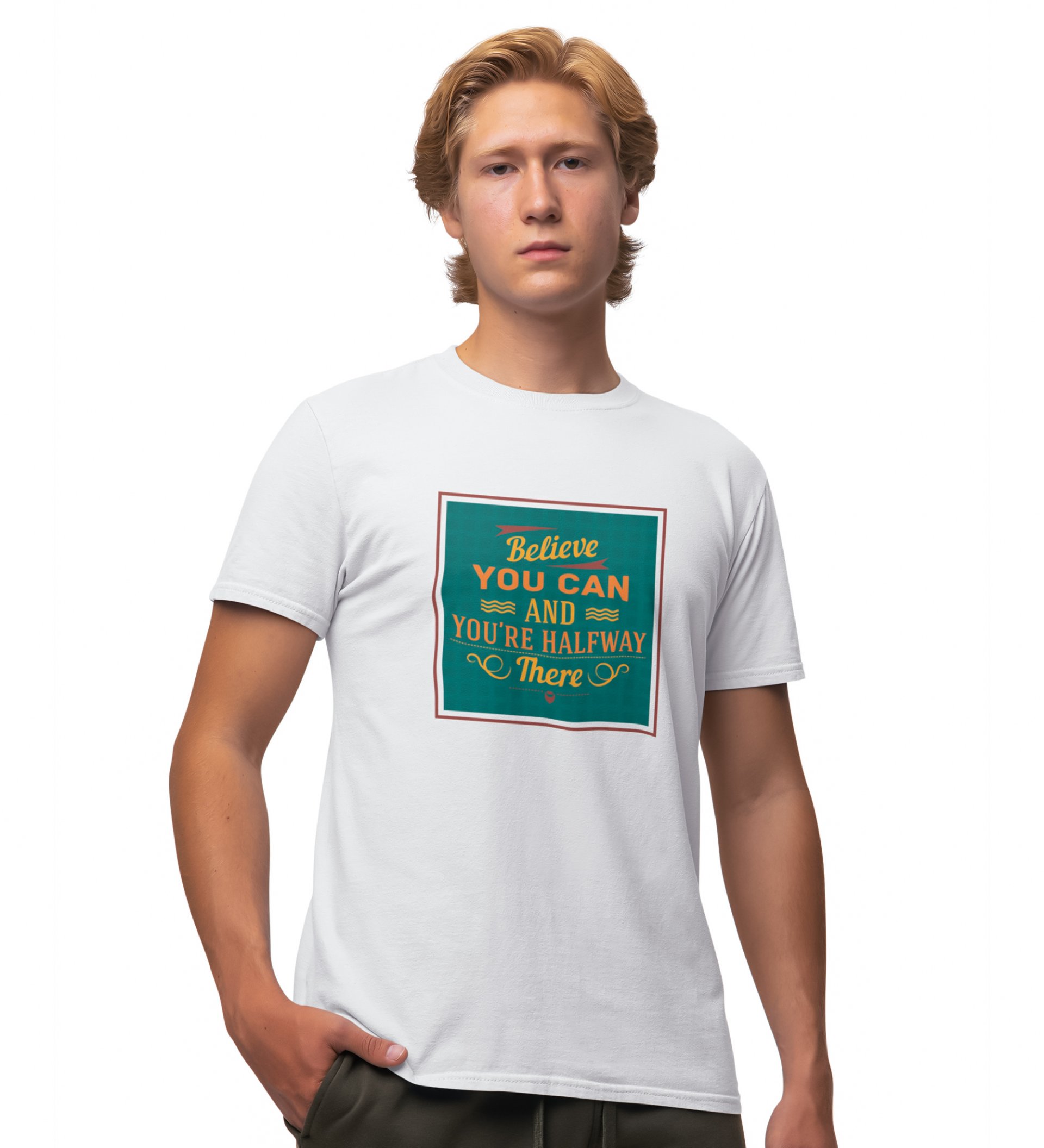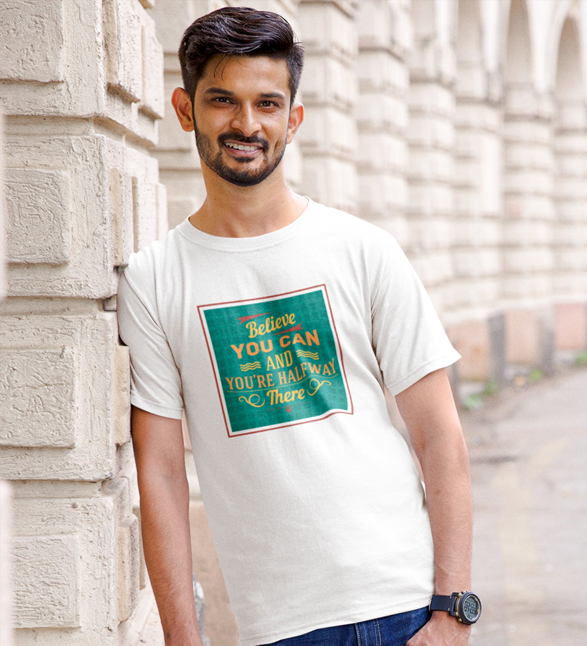 Believe In Yourself White Round Neck Cotton Half Sleeved Men's T-Shirt with Printed Graphics