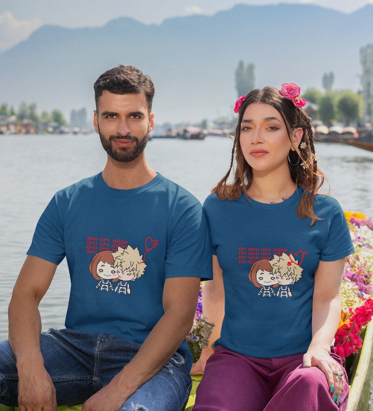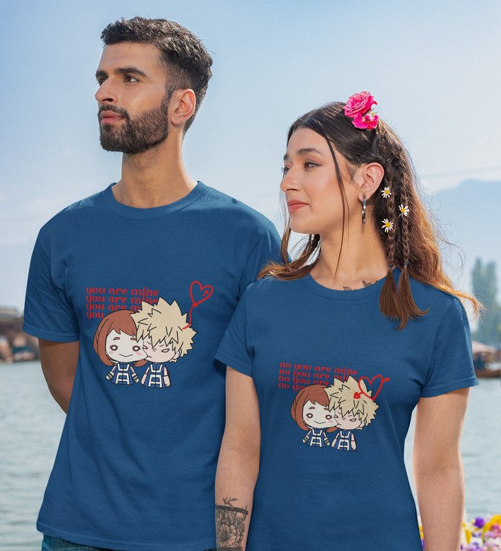 You Are Mine Couple Printed (blue) T-shirts
