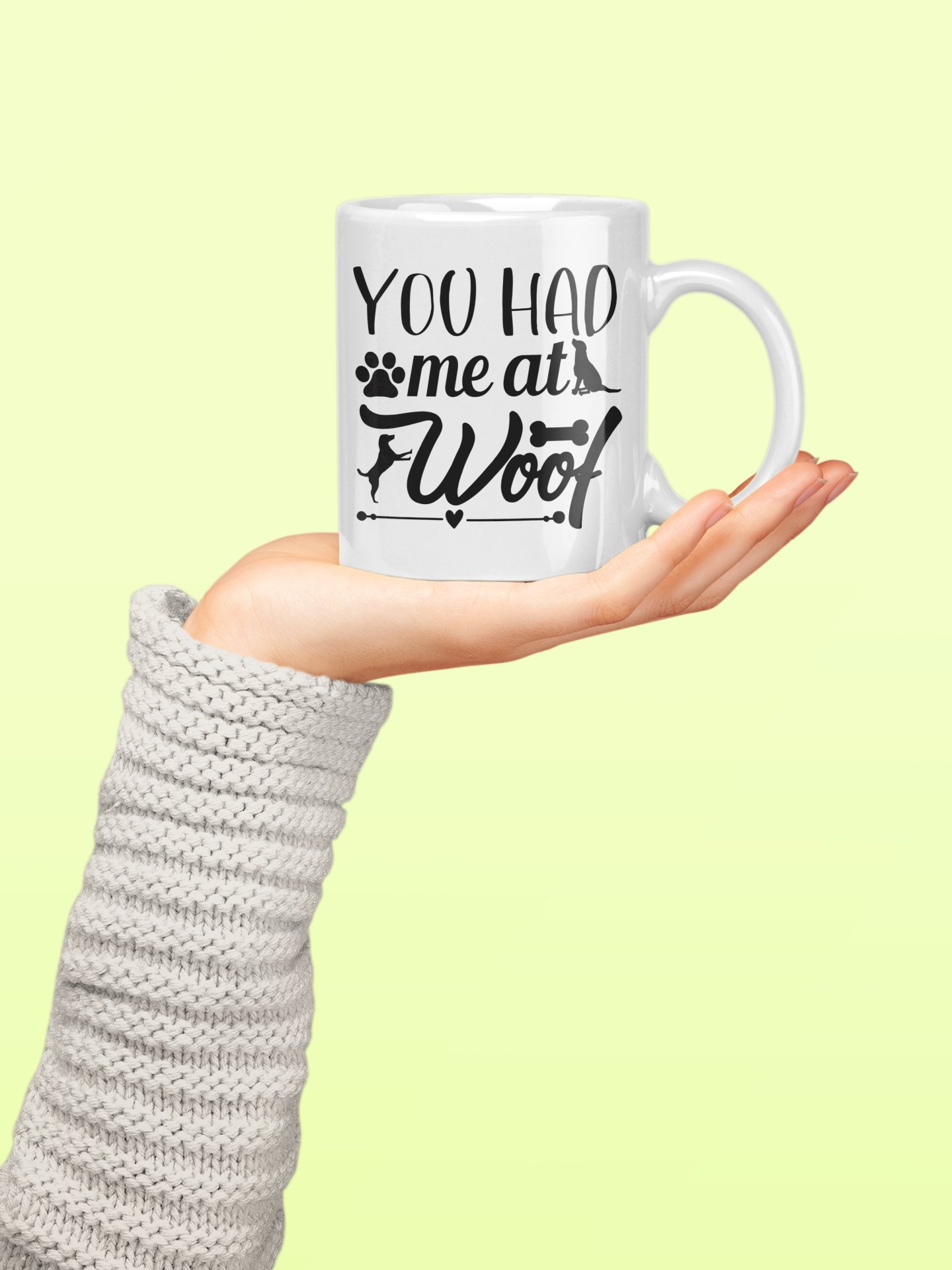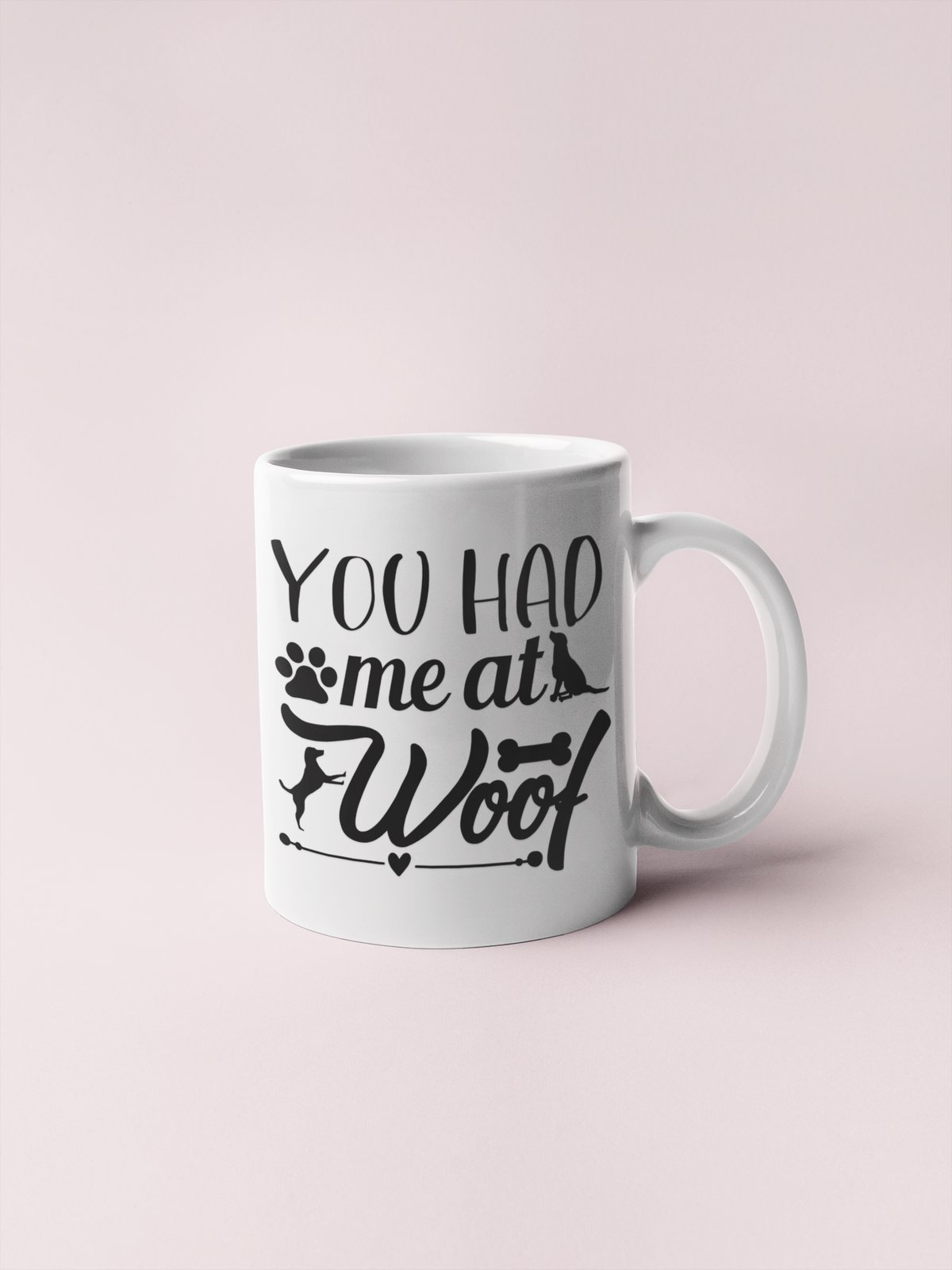 You had me at woof - pets themed printed ceramic white coffee and tea mugs/ cups for pets lover people