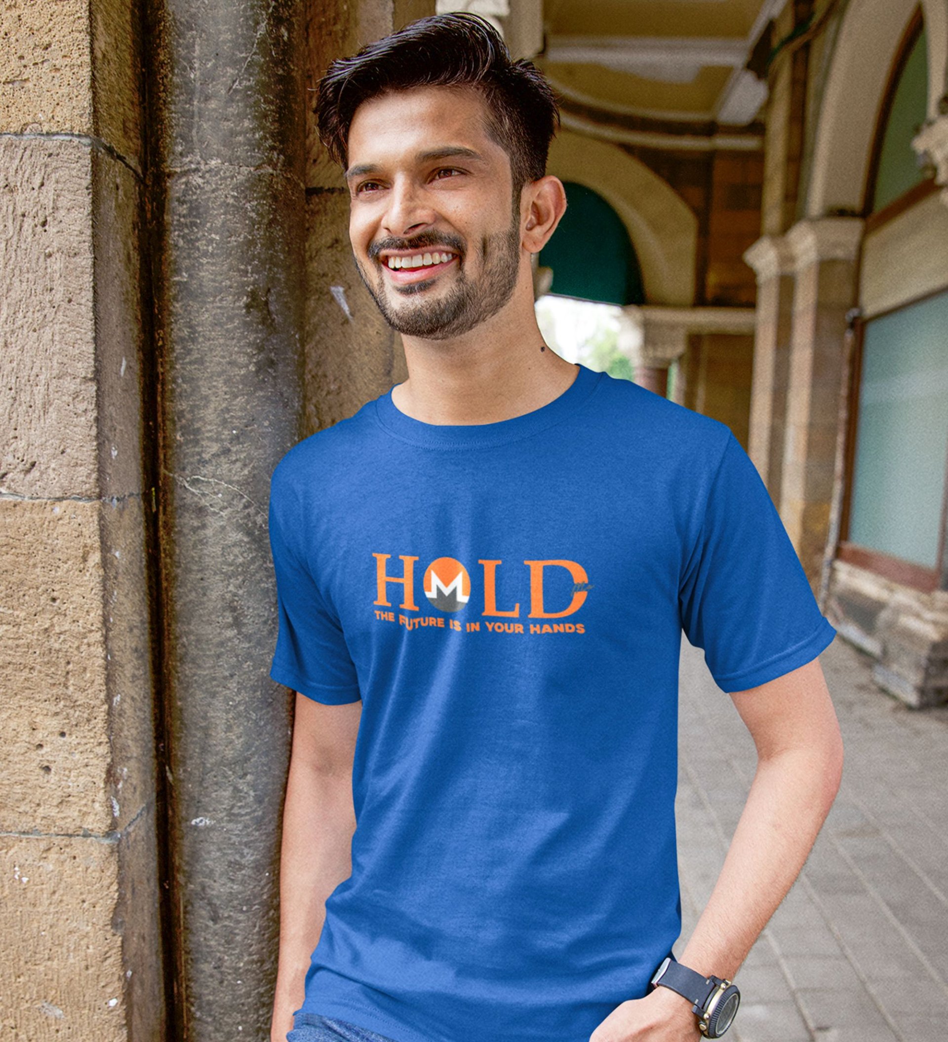 You Hand Your Future Wings Blue Round Neck Cotton Half Sleeved Men's T Shirt with Printed Graphics